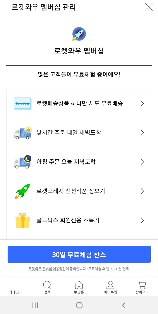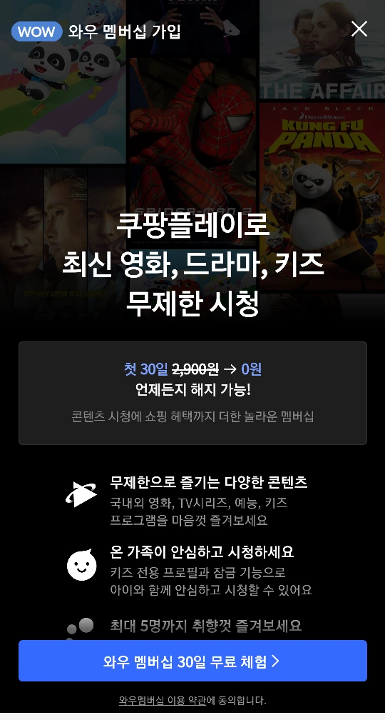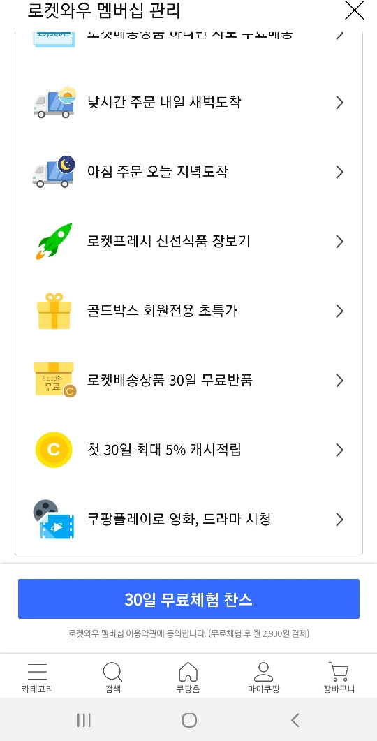 쿠플,쿠팡,와우멤버십30일,세컨콘텐츠