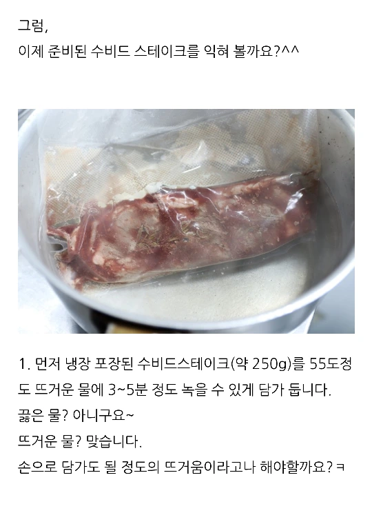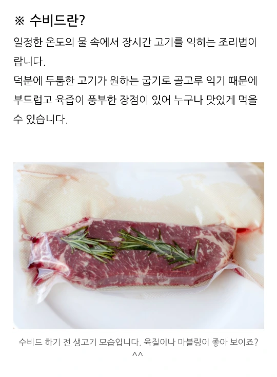 스테이크, 이제 집에서 간편하게~5분만에 뚝딱※ 수비드란? 일정한 온도의 물 속에서 장시간 고기를 익히는...