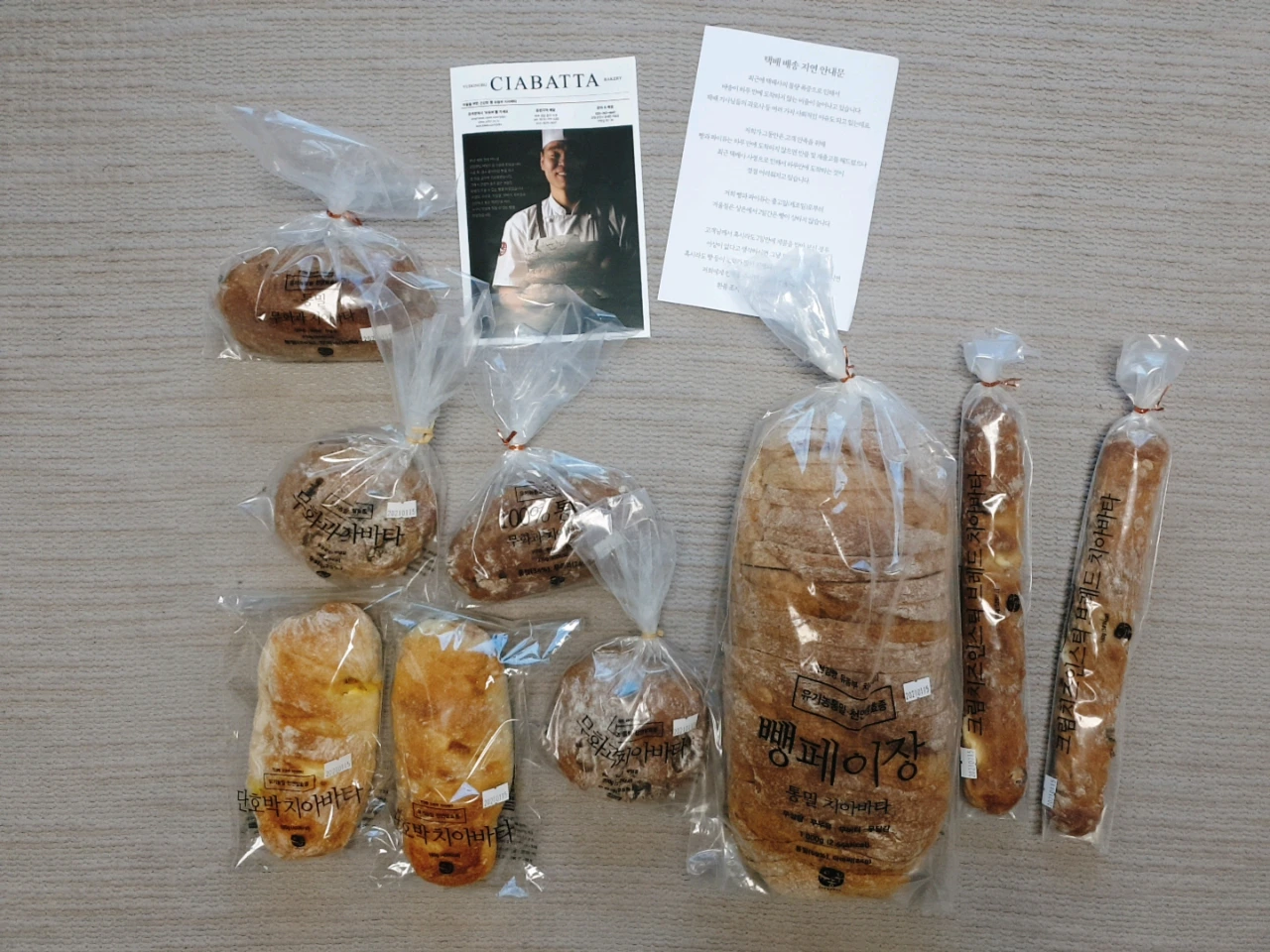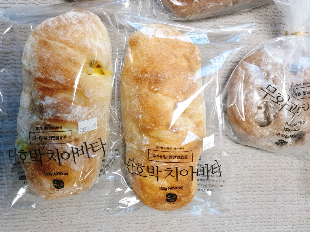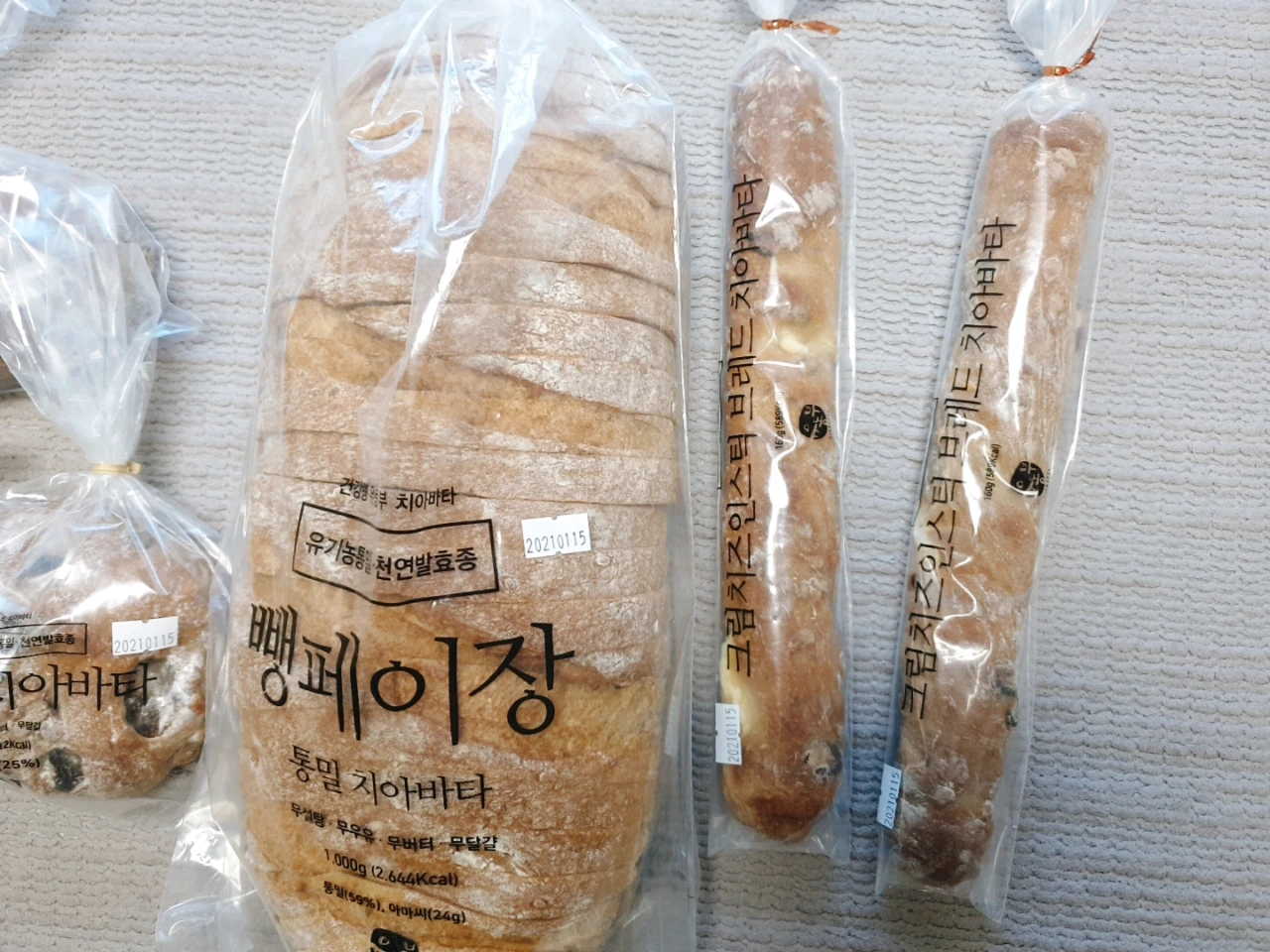 일반/통밀 무화과 치아바타. 단호박 치아바타, 크림치즈스틱, 통밀 뺑페이장