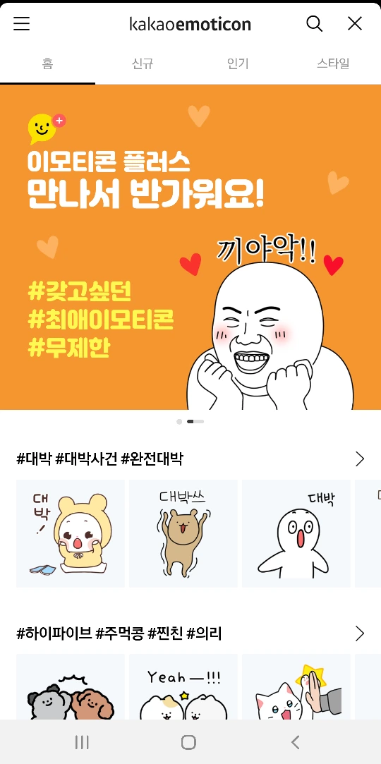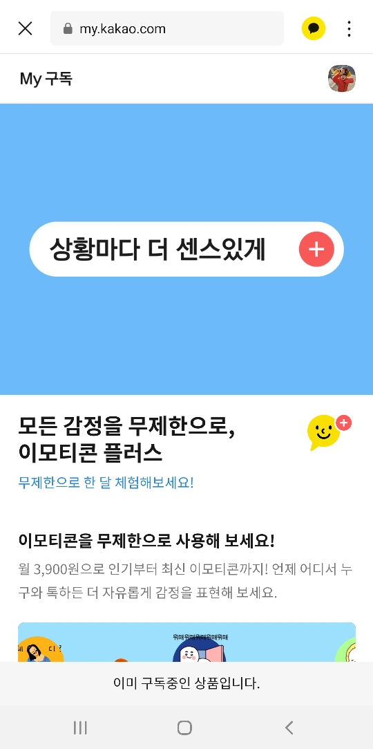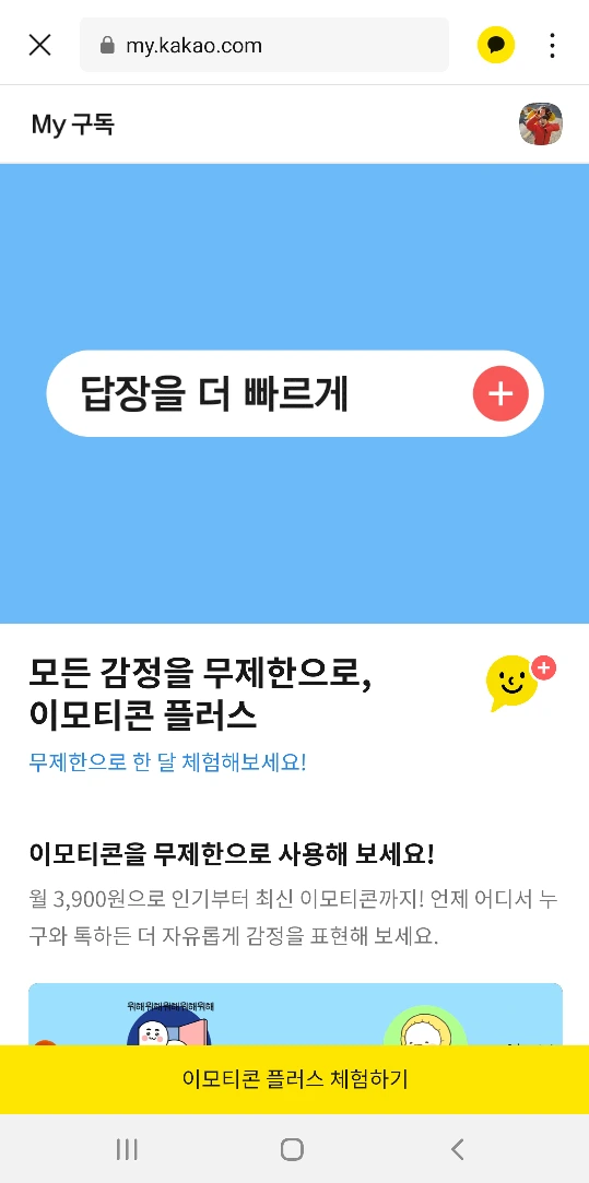 카카오게임즈에서 무료 이모티콘 공짜를 열심히 모으다가 무제한 이모티콘 카카오 이모티콘 플러스 한 달 꽁짜라는 말에 신청합니다.
