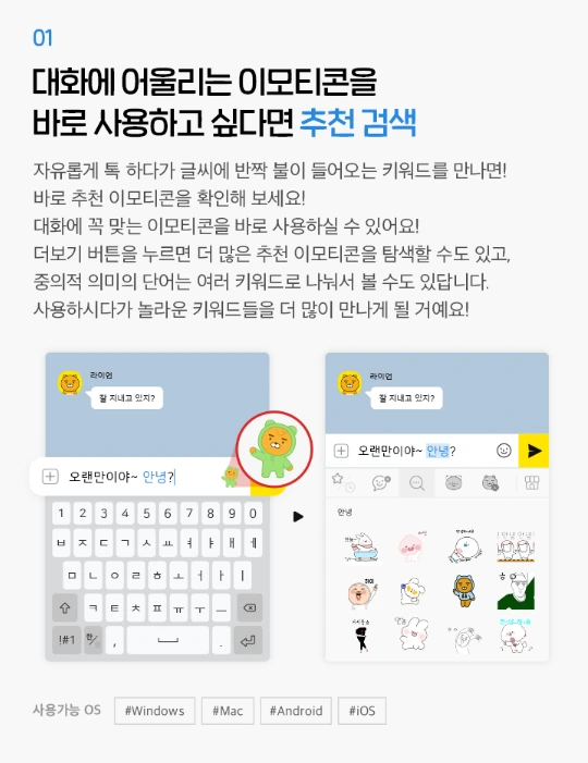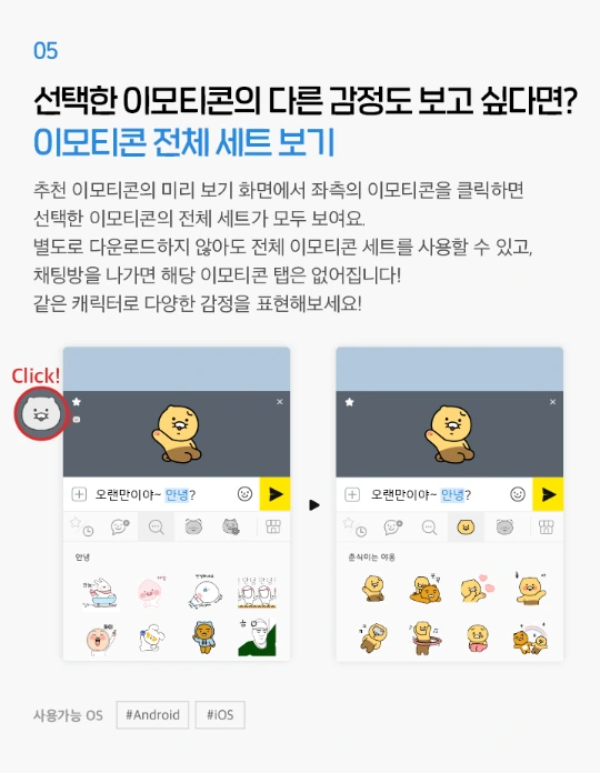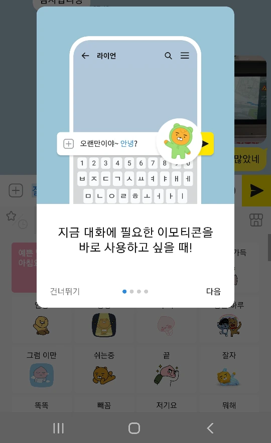 이모티콘 누르면 하단에 주룩 이모티콘들이