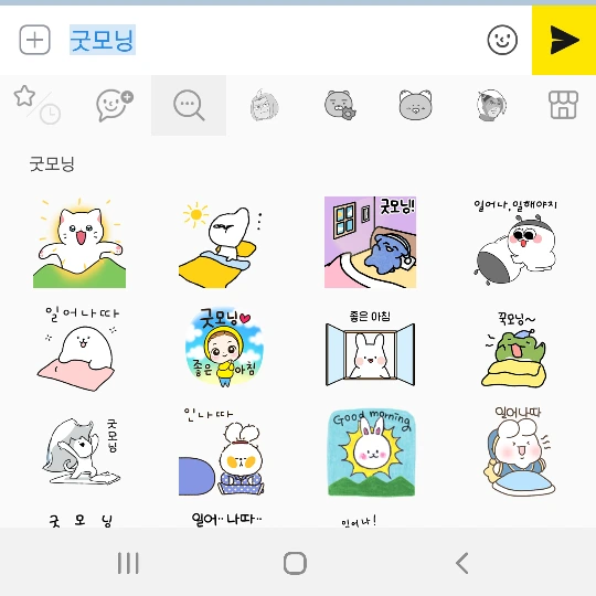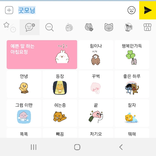 굿모닝을 누르면 우측에 관련된 이모티콘이 등장합니다.