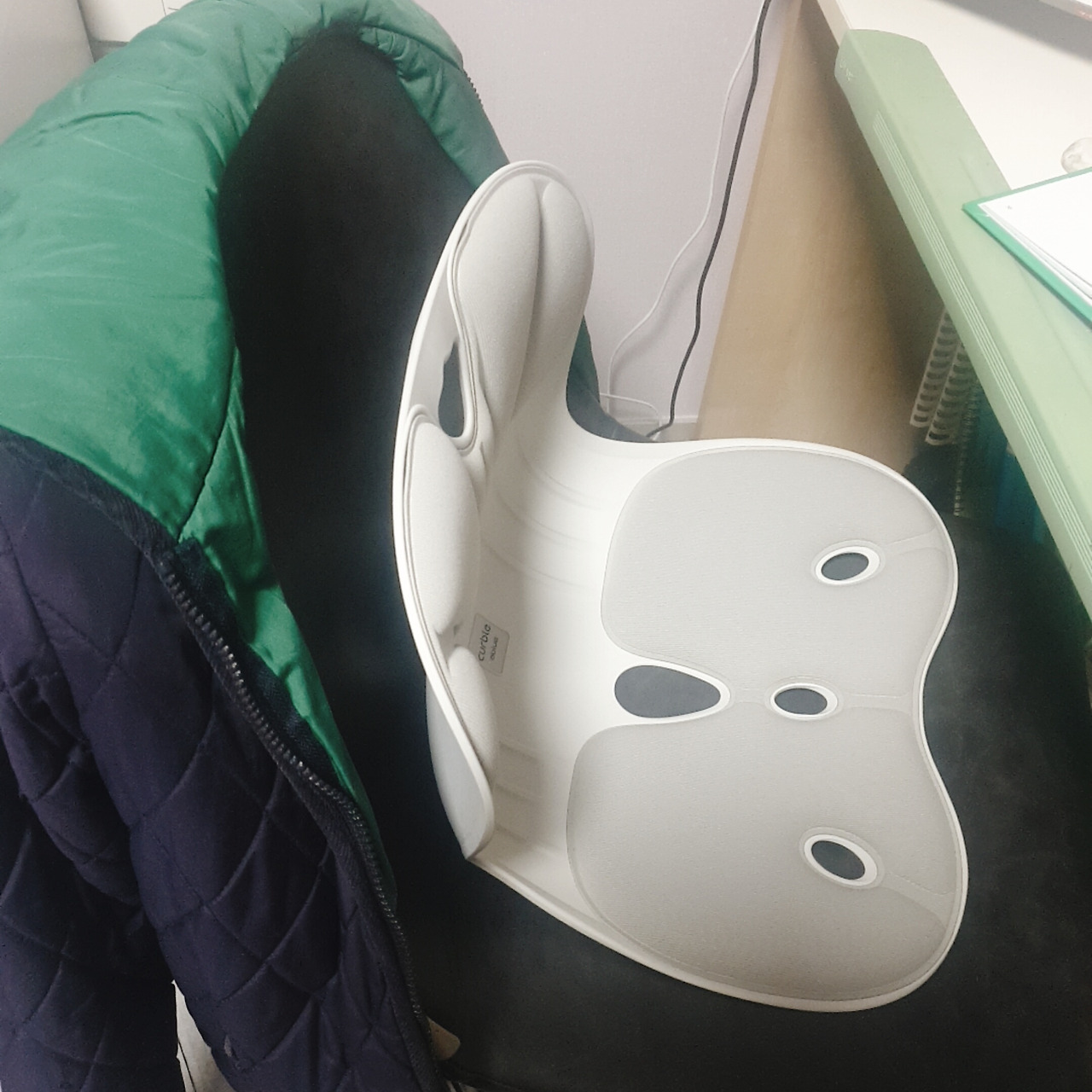 다리 한쪽을 올려놓든가, 삐딱하게 앉아있던가 평소 의자에 앉는 풍경이었는데 커블케어에 앉으면 평소대로 멋대로 앉으면 불편해서, 애초에 바른 자세로 시작됩니다.