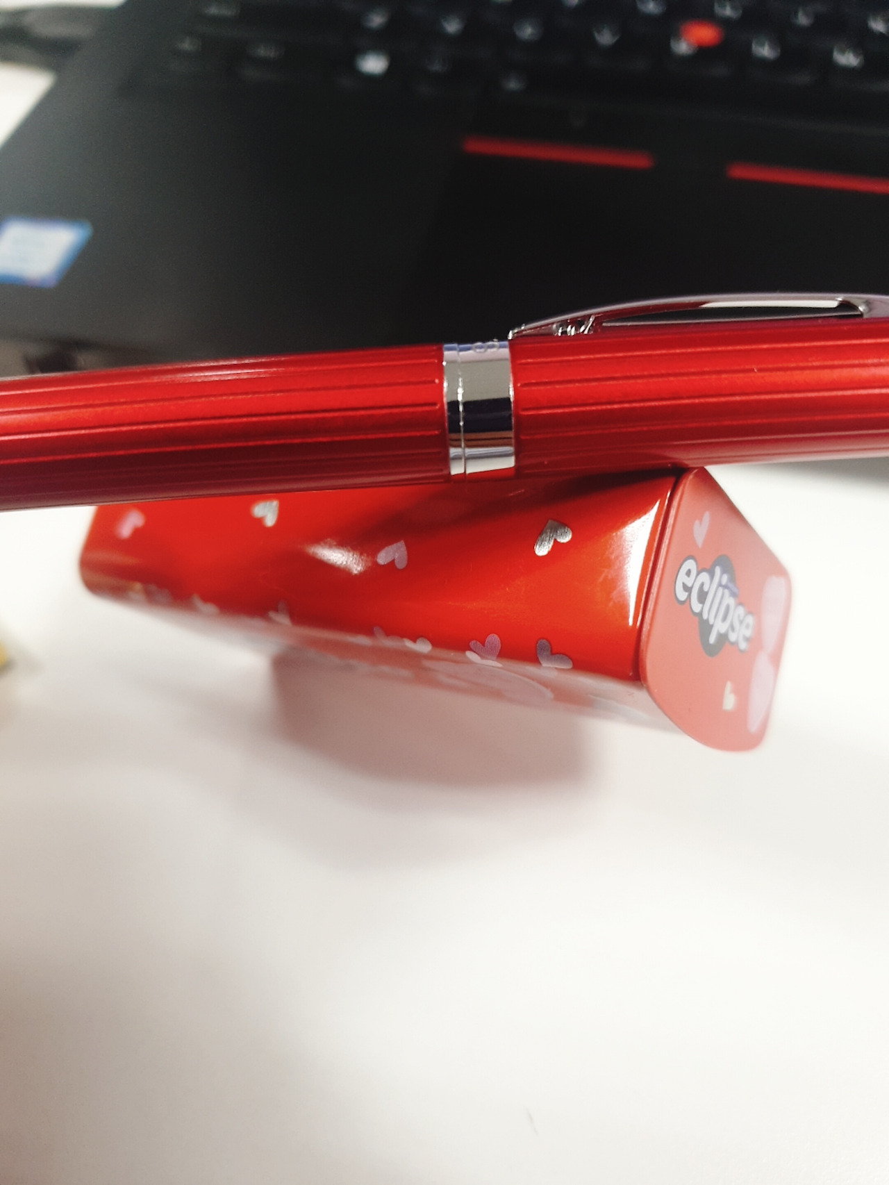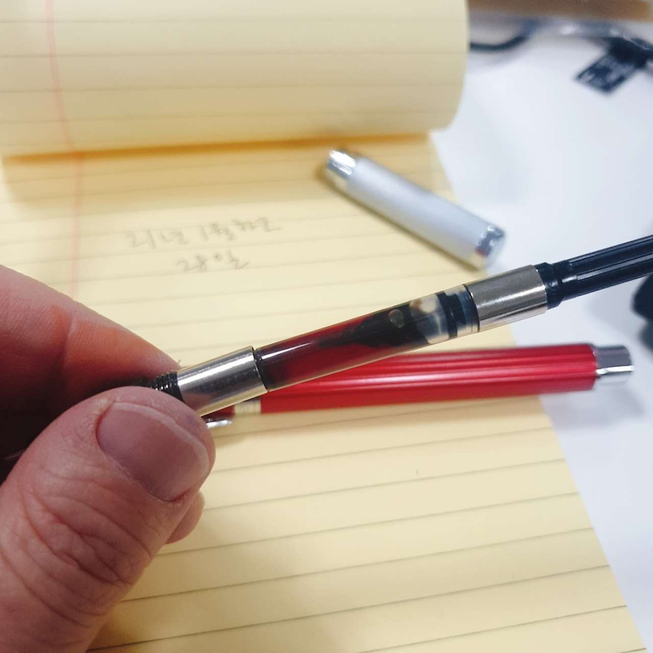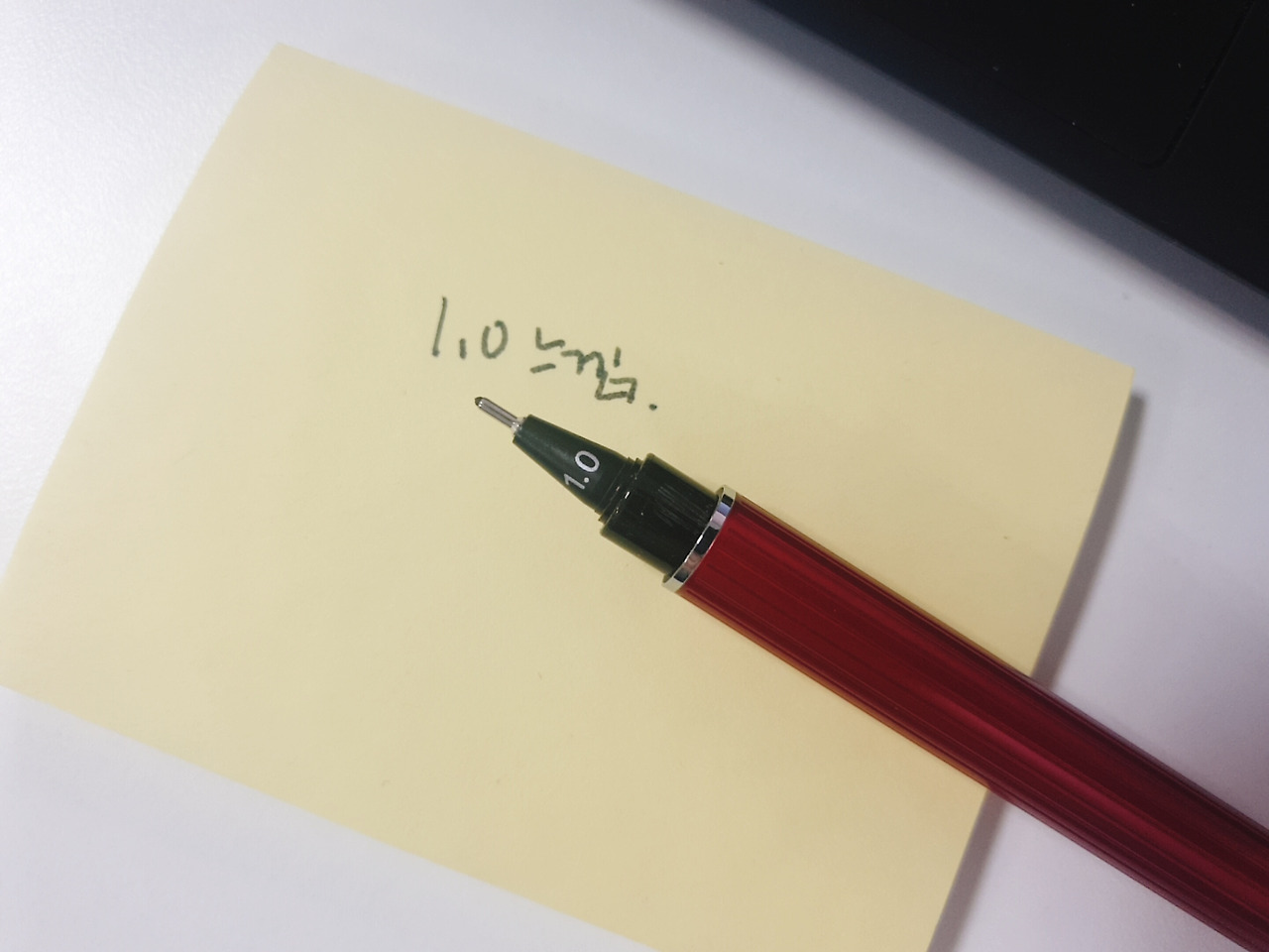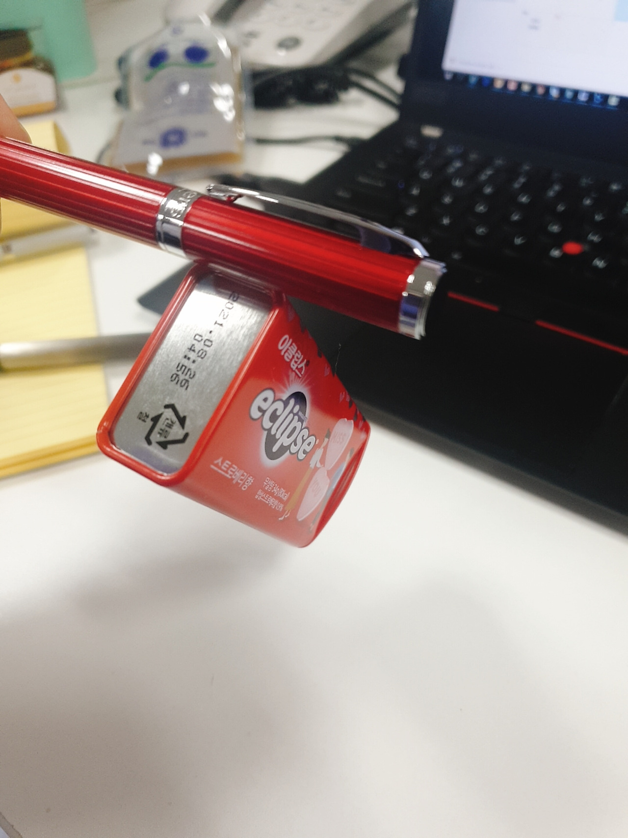 빨간색의 강렬함 그리고 펜 느낌이 기존의 거칠 거칠함도 좋았지만 맨들 맨들함이 더 무난하고 좋습니다.섬유팁의 필기감은 언제나 정답입니다.몇 개나 더 모으려나 일단 대 만족입니다.