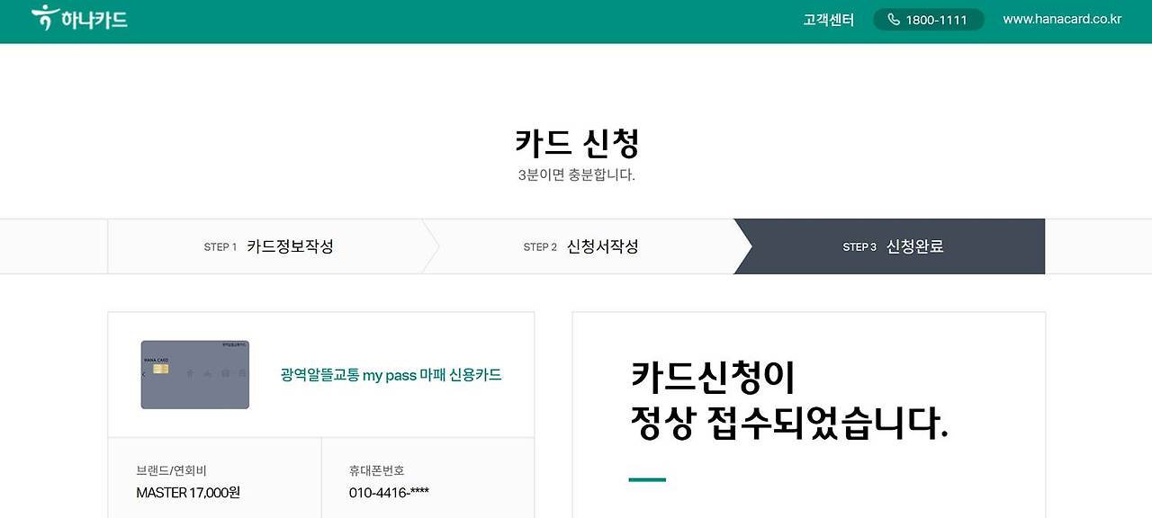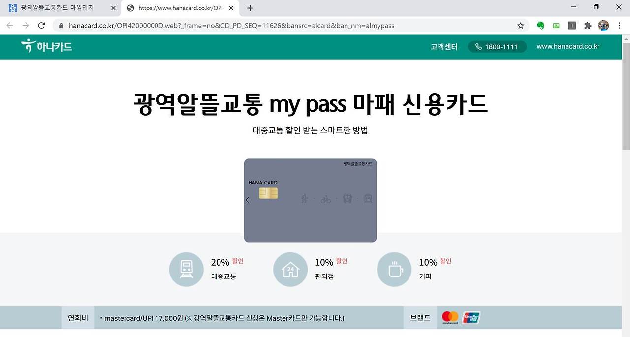 광역알뜰 교통 mypass 마패 신용카드, 홈페이지에서 신청하라고 합니다.