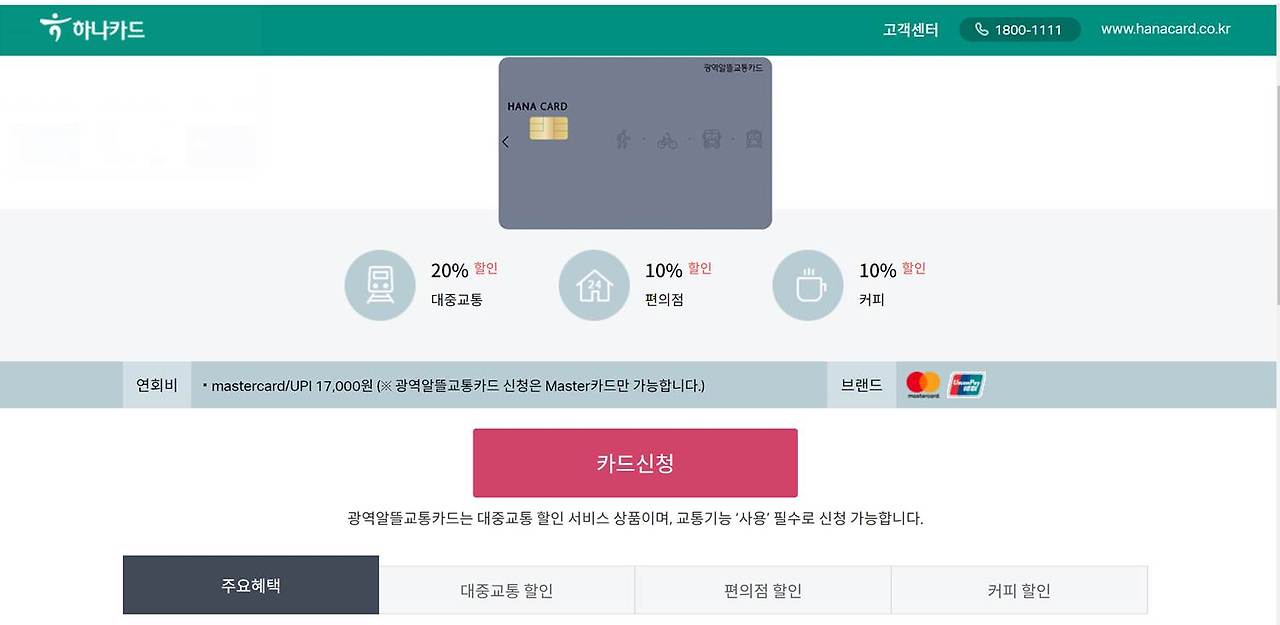 카드는 광역알뜰교통카드 사이트에서 신청합니다.