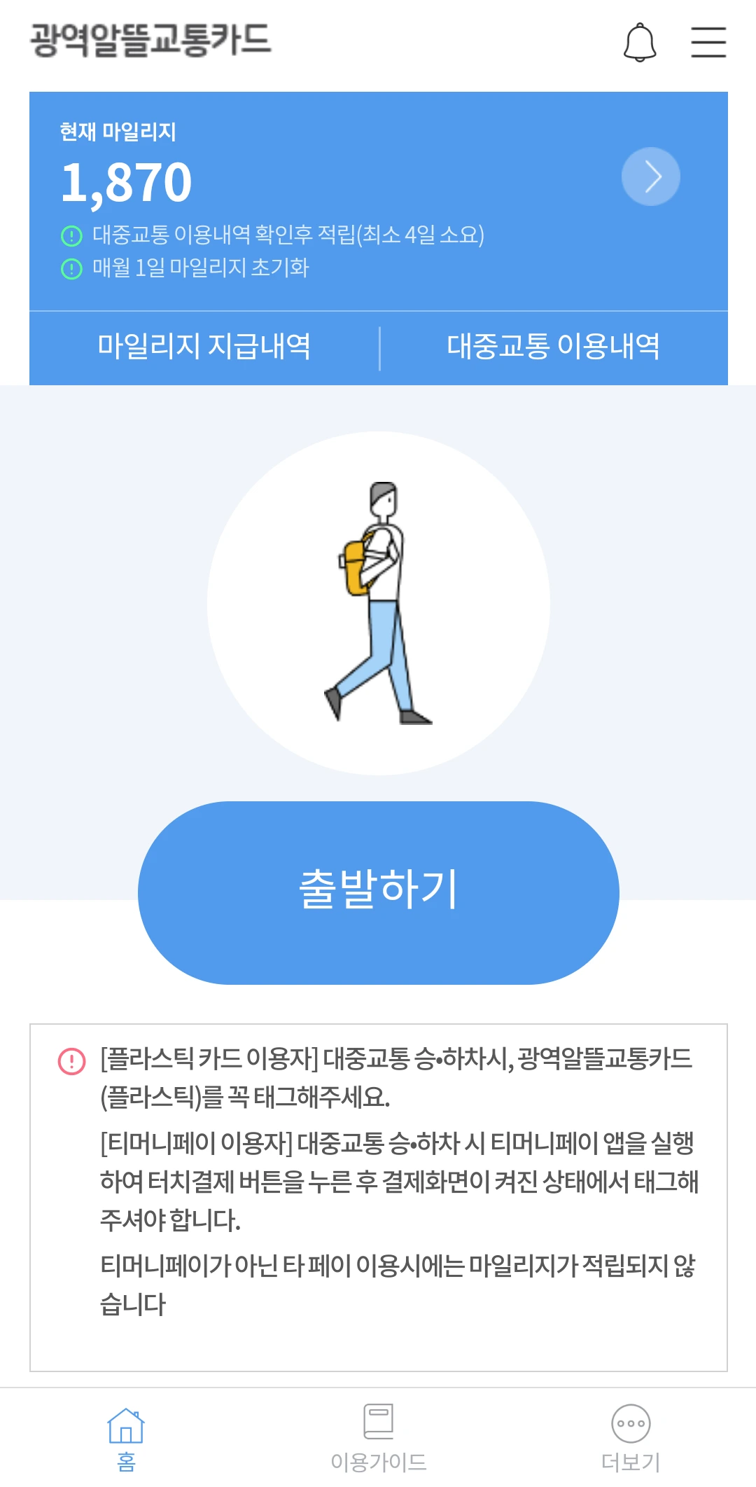 물론 티머니를 쓰기 전에 알뜰광역앱도 실행시키고 출발을 눌러야 하고 하차 티머니 처리 후 도착을 눌러야 하는 번거로움이 이미 존재