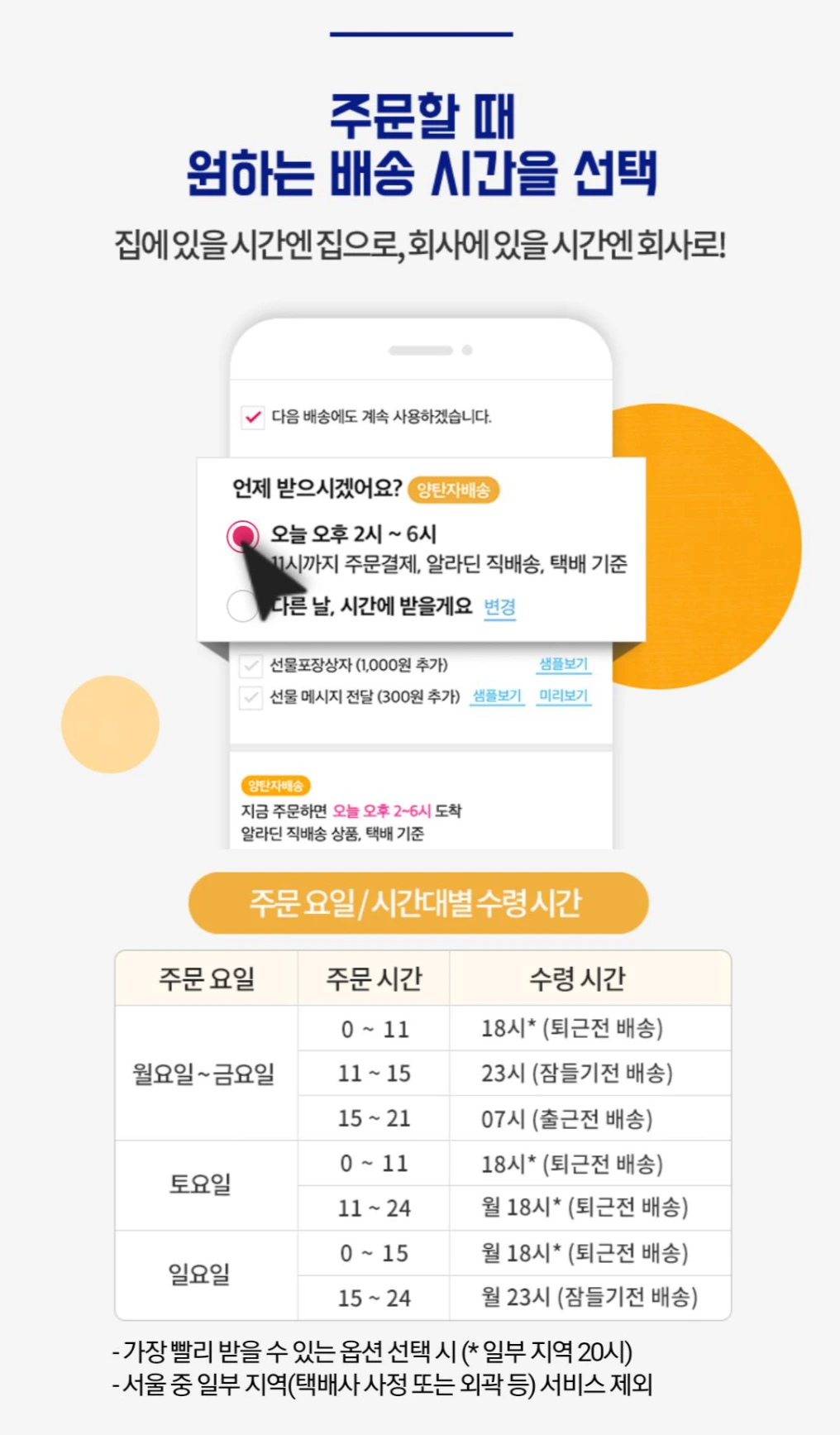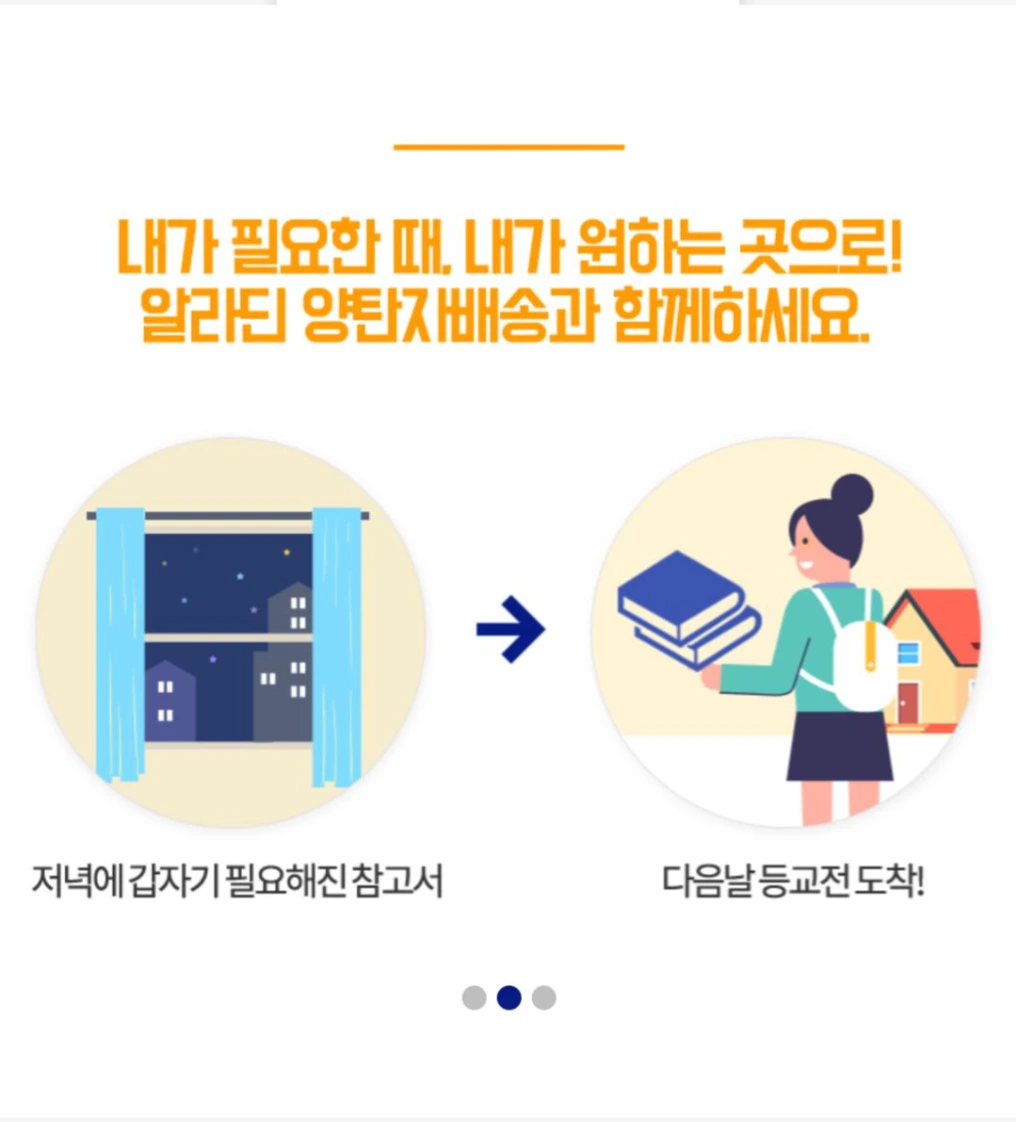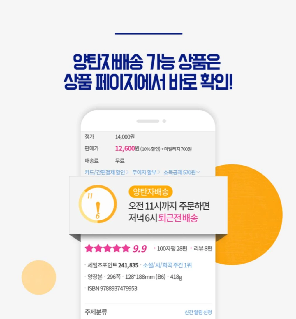 물류사의 제안이었는지, 알라딘의 필요 없는지는 잘 모르겠지만, 고객을 가만히 두지 않겠다는 일념은 높이 사게 만듭니다. 당일배송에서 도서 새벽 배송입니다.