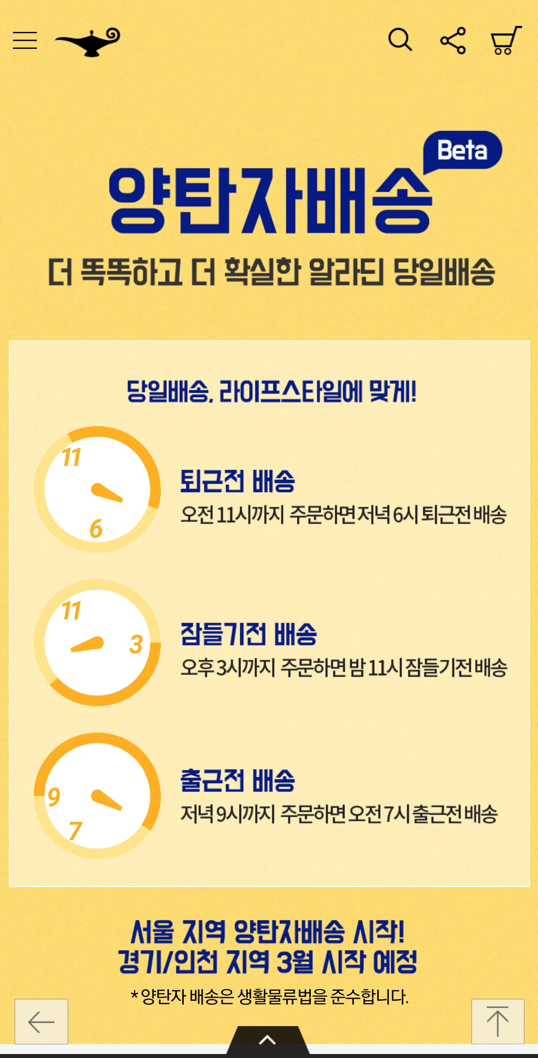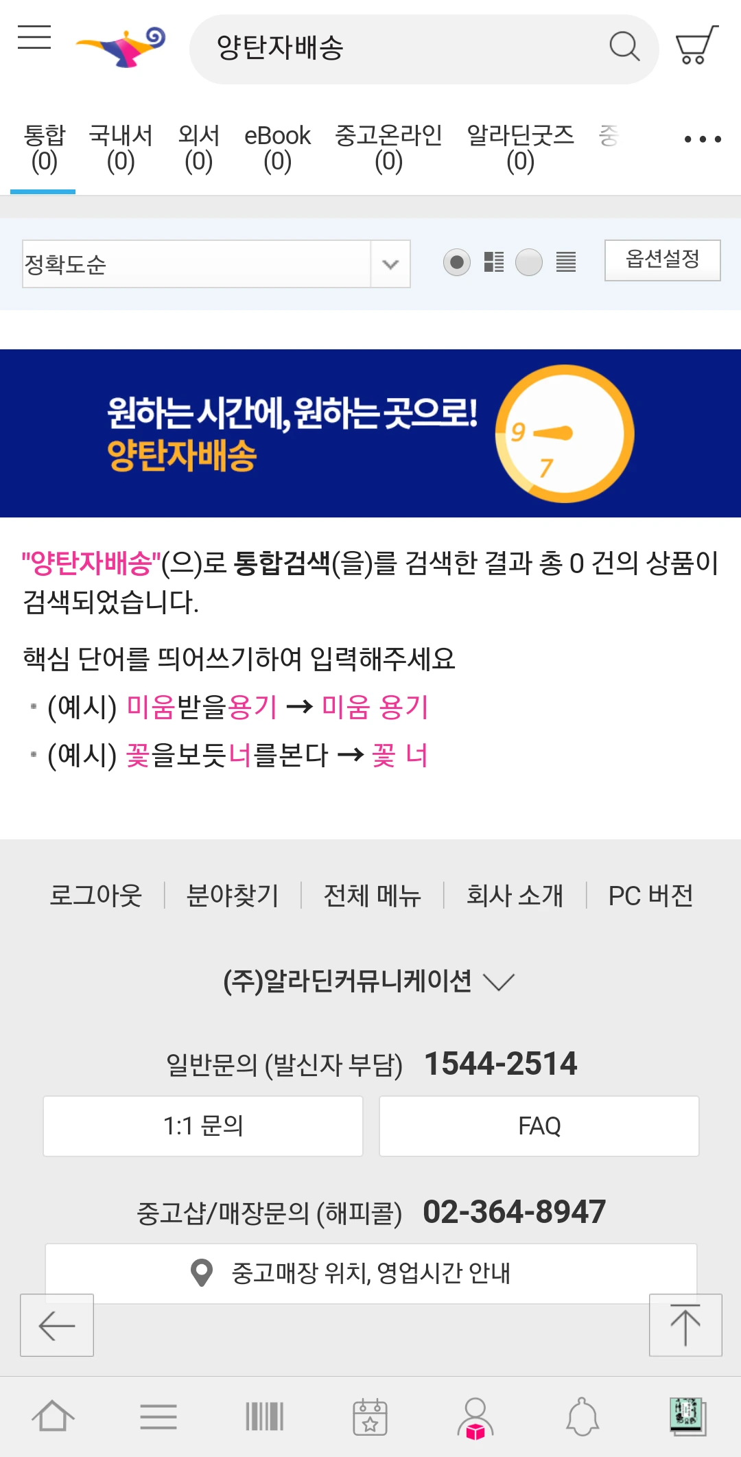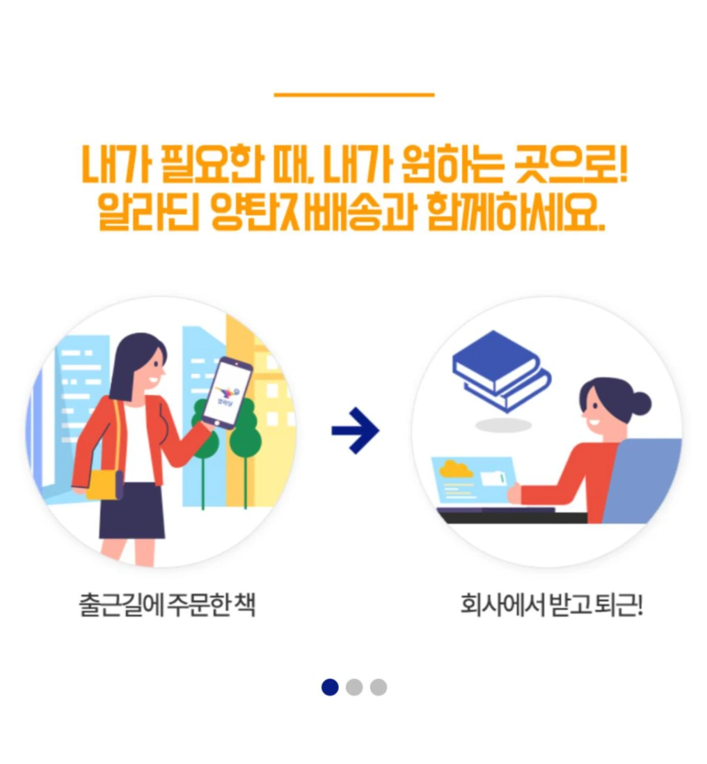 물류사의 제안이었는지, 알라딘의 필요 없는지는 잘 모르겠지만, 고객을 가만히 두지 않겠다는 일념은 높이 사게 만듭니다. 당일배송에서 도서 새벽 배송입니다.