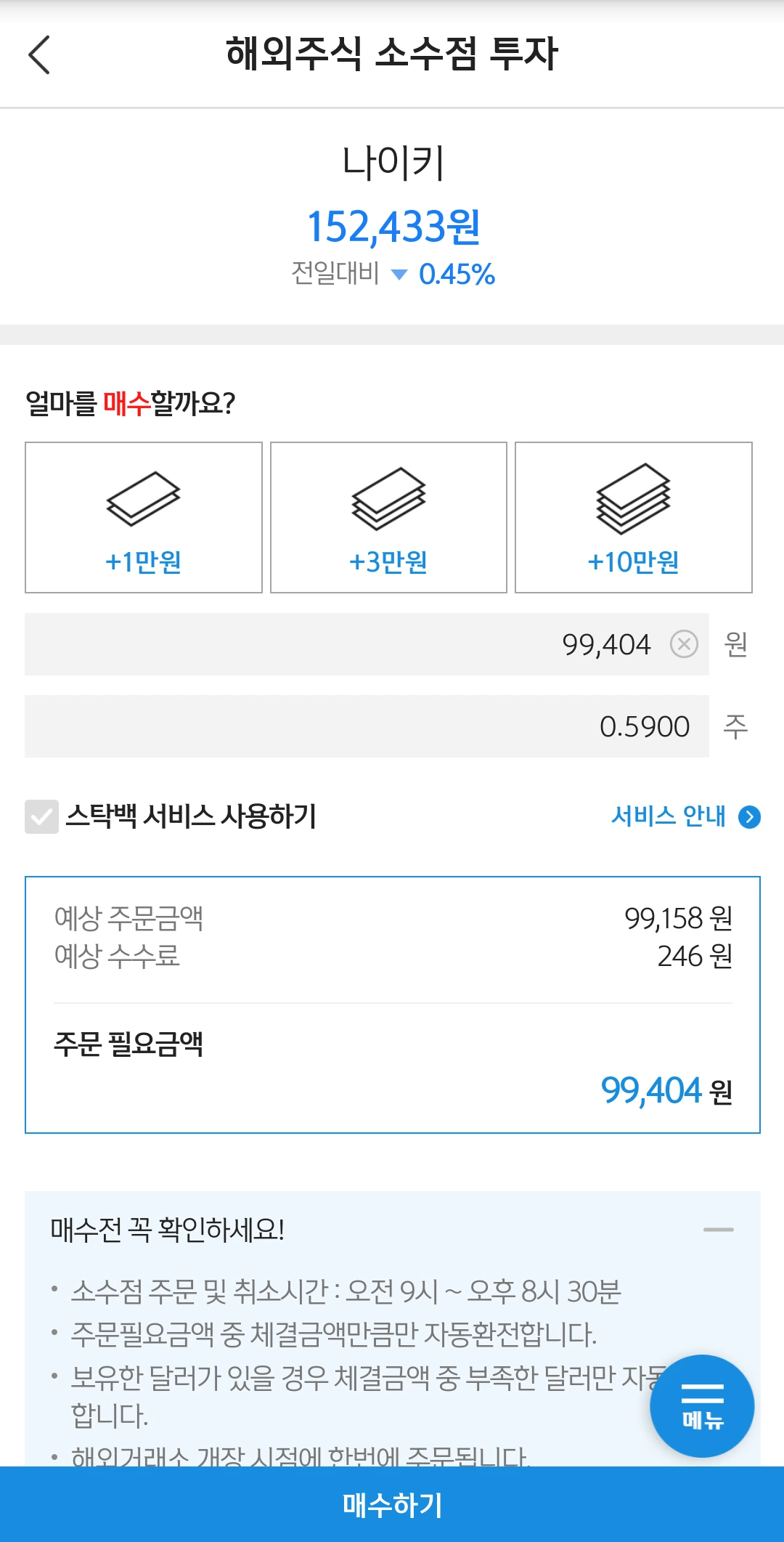 스타벅스와 나이키입니다. 나이키로 정기 매수 말고 개별 매수도 가능합니다.