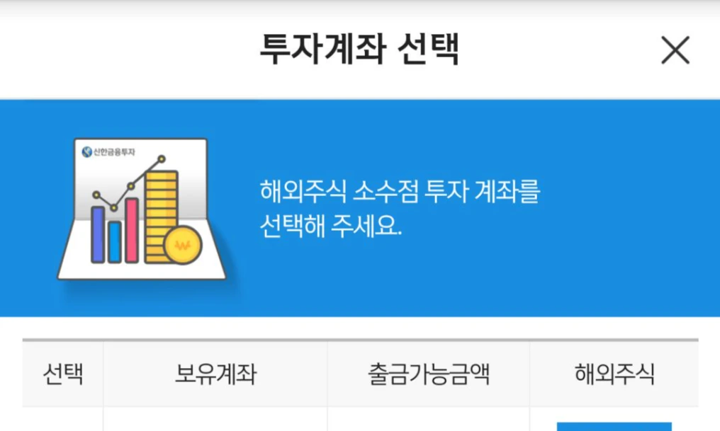 처음이면 해외주식 서비스 신청 필요합니다. 투자계좌도 선택하고, 다행히도 투자계좌를 보유 중입니다.