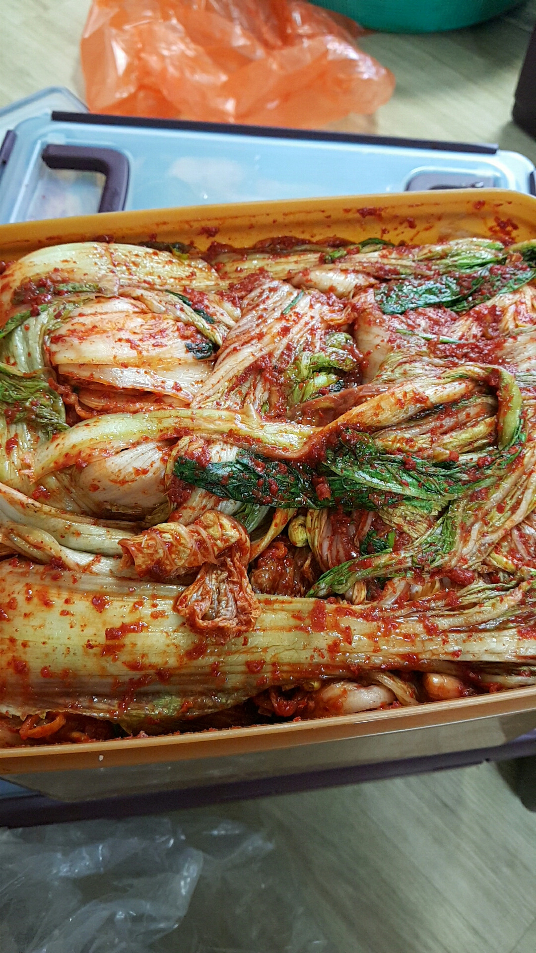 그리고 김장김치에 고기 싸먹는 거 그리고 김장김치를 우리집 김치냉장고에 옮기는 것이였다.