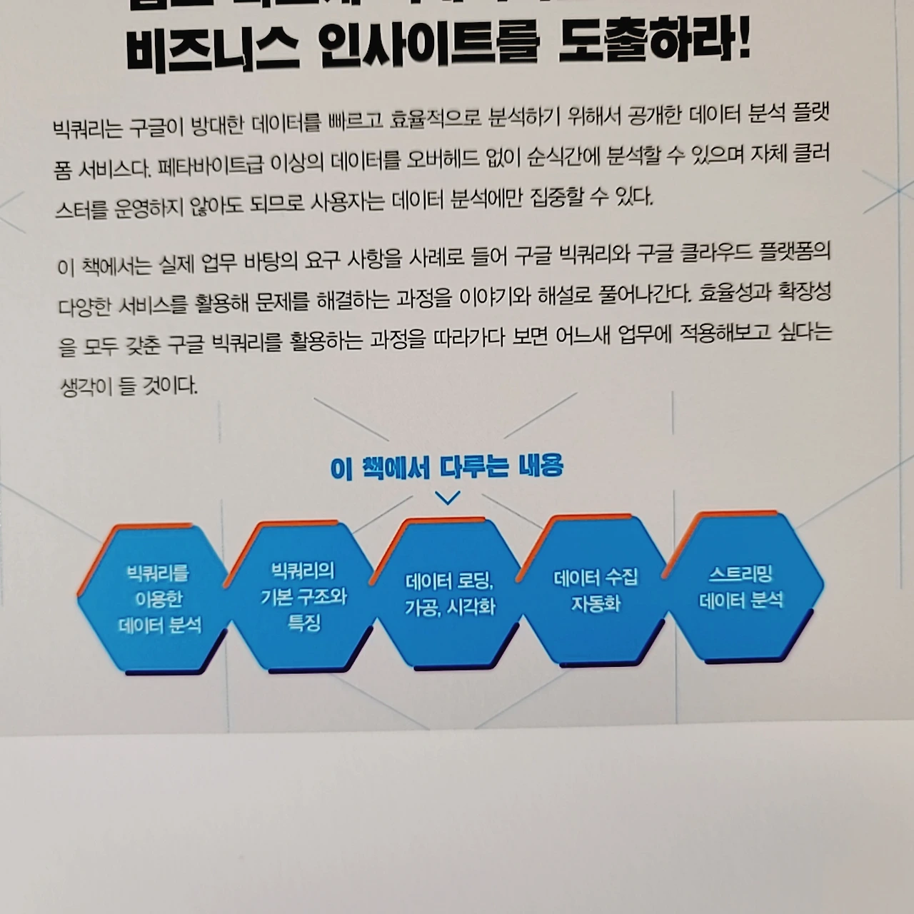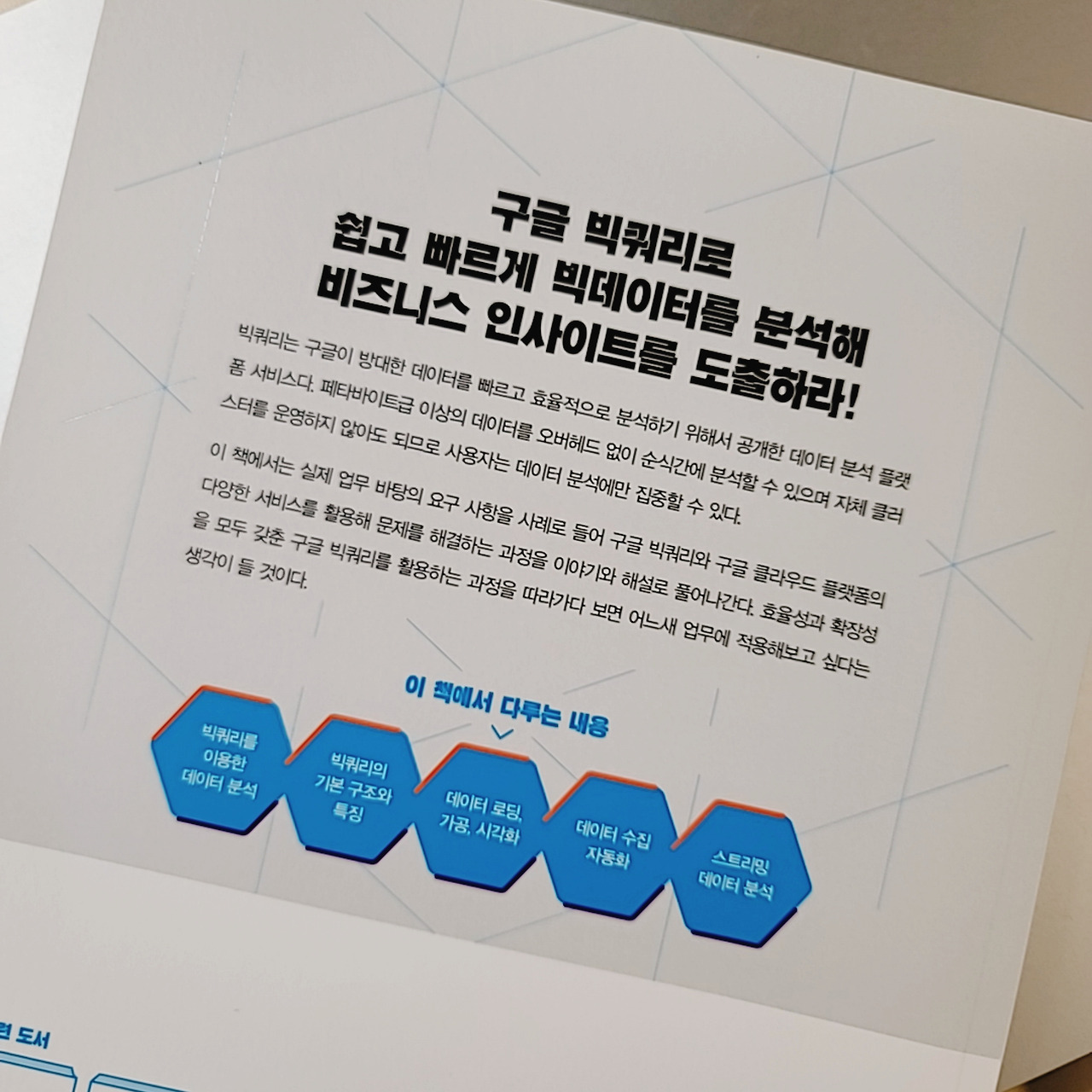 그래서 이야기로 풀어가는 방식이 실제 현업과 유사해 보이는 책이다. 구글 빅쿼리에 대하여 잘 알아갈 수 있는 책입니다.