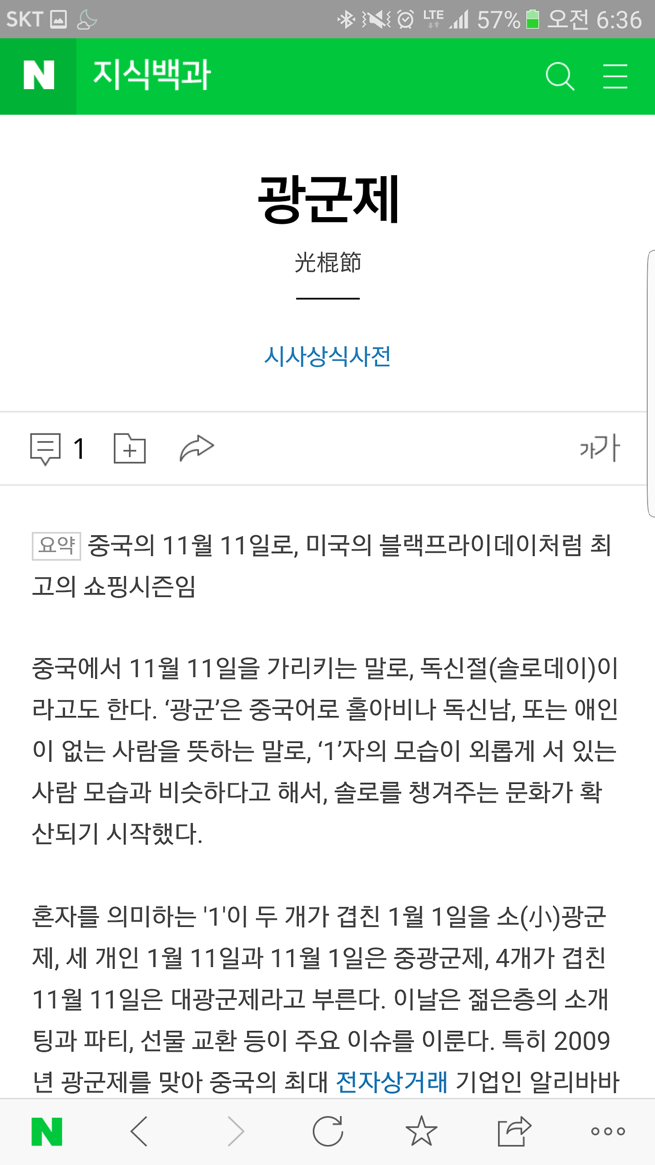 빼빼로 데이로 익숙한 우리와 달리 1자의 4개의 날의 형상을 독신자의 날로 정해 대대적인 할인을 하는 중국판 블랙프라이데이이다.