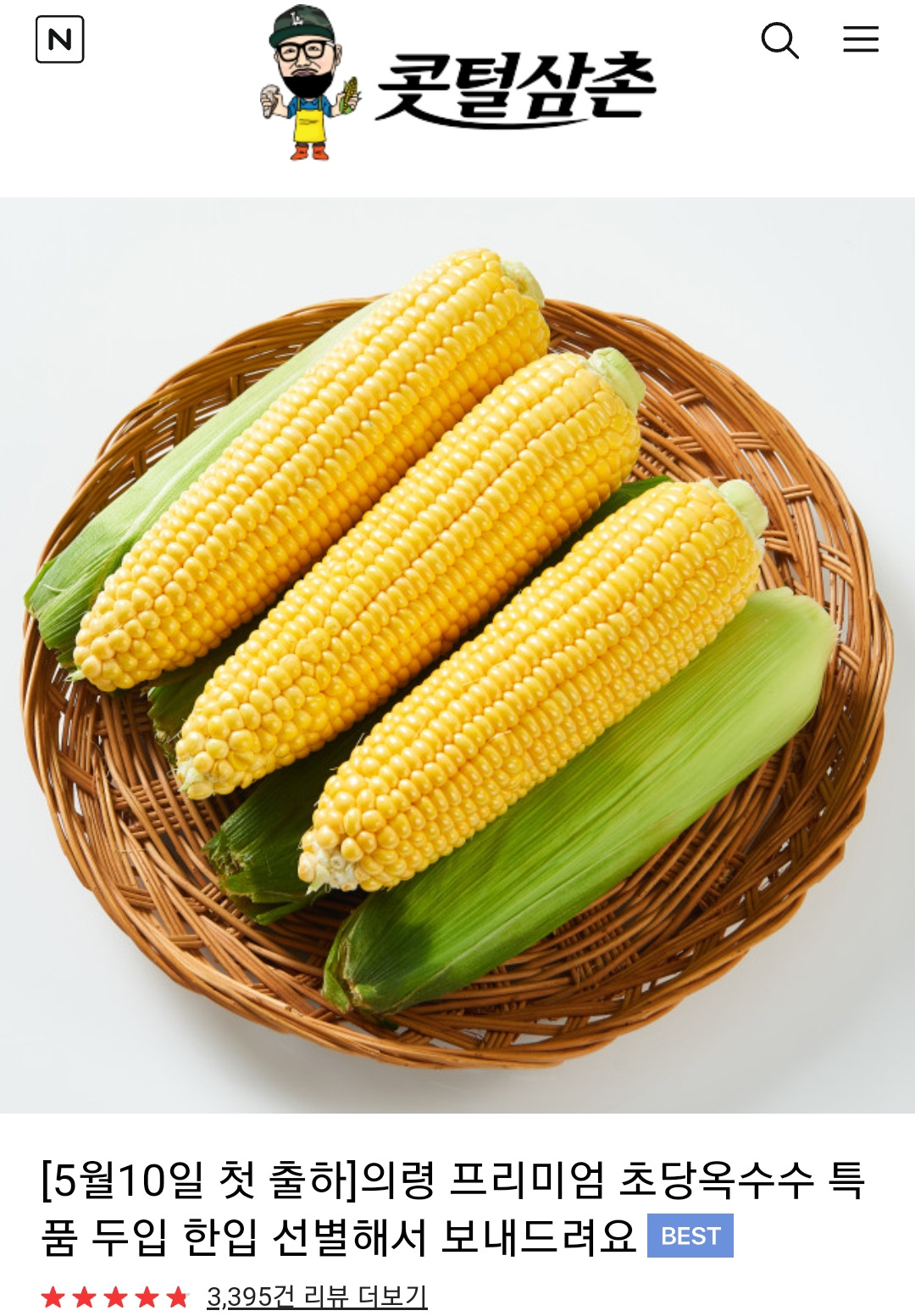 [5월10일 첫 출하]의령 프리미엄 초당옥수수 특품 두입 한입 선별해서 보내드려요 : 콧털삼촌 [콧털삼촌] 청정지역 산지에서 생산되는 수산물 농산물등을 판매. 홍보합니다