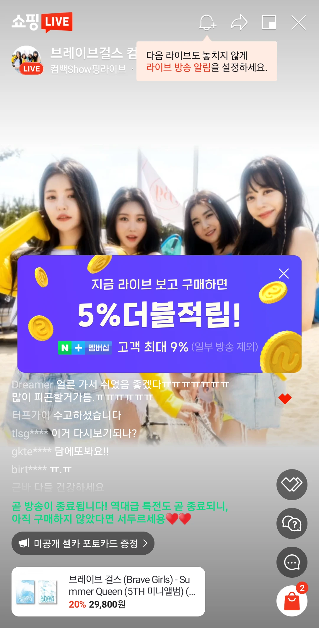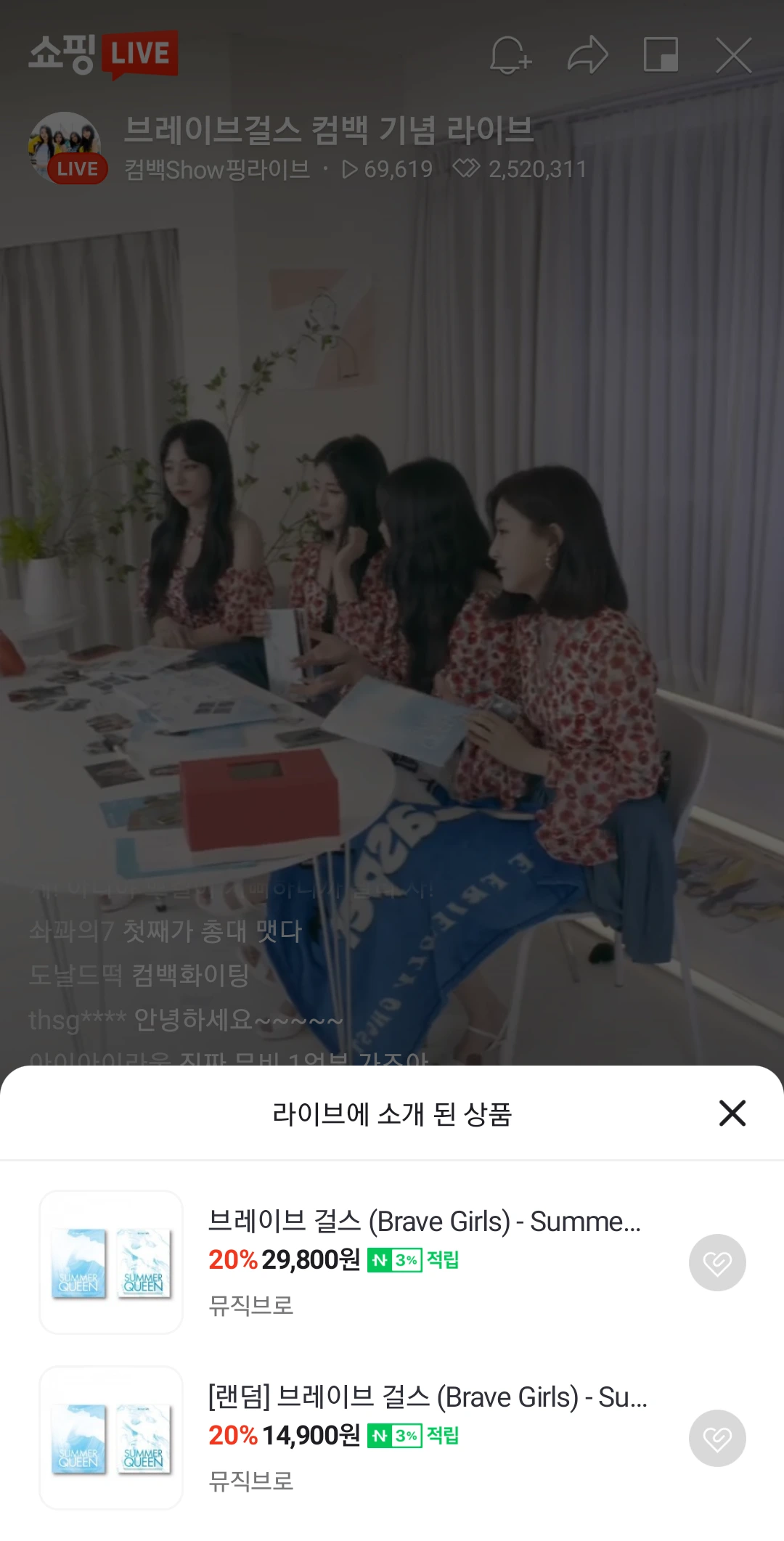 네이버라이브쇼핑,음반,브래이브걸스,빵,스티커