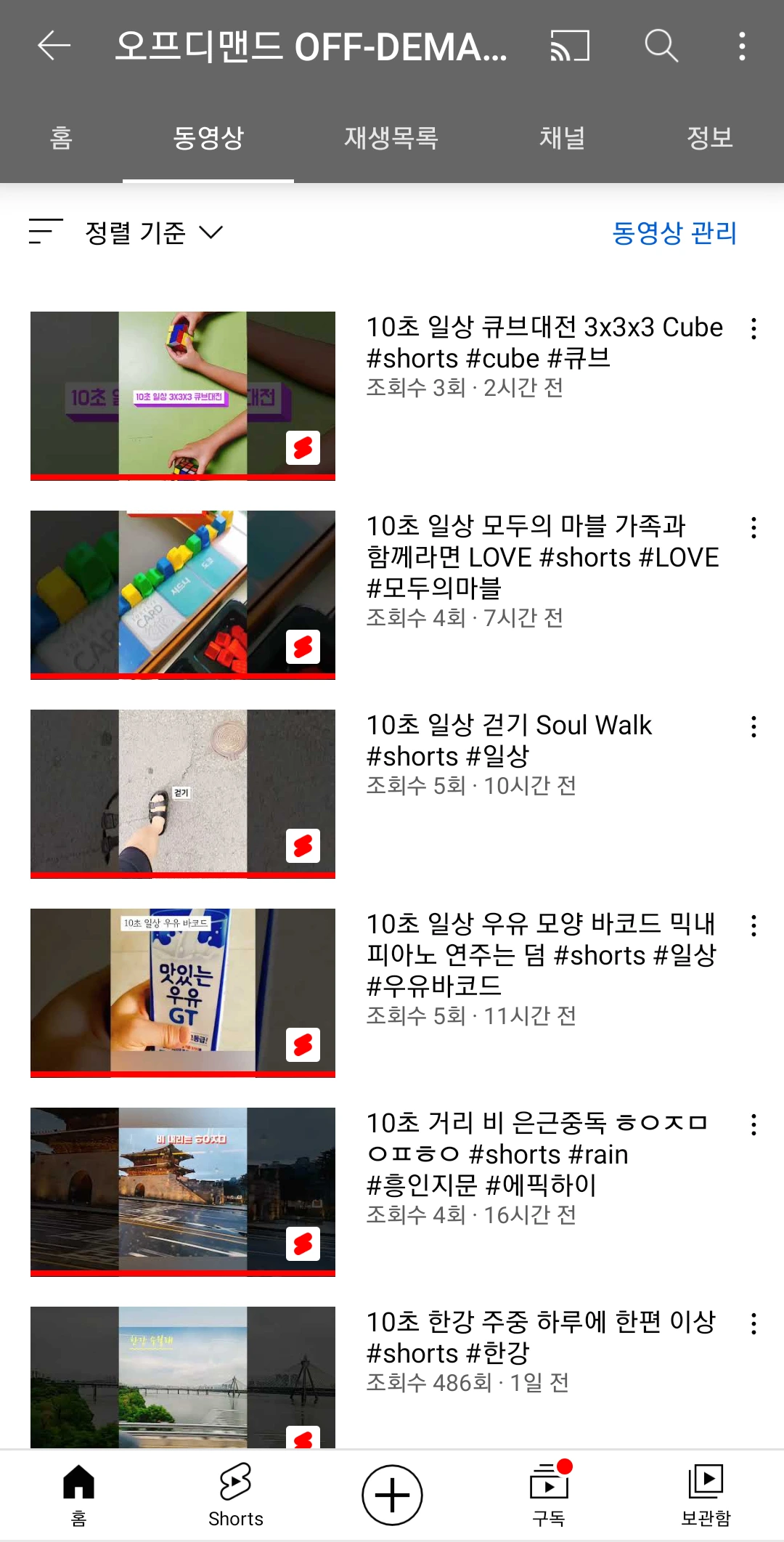 최근 유튜브 숏츠 서비스가 틱톡의 대항마로 서비스되고 있습니다. 그래서 8월부터 일상이라는 주제로 거의 매일매일 시도 중에 있습니다.