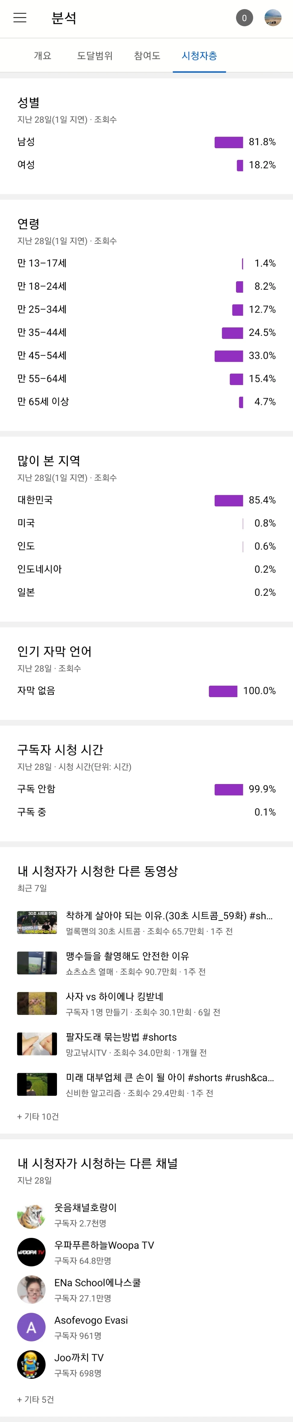 유튜브 스튜디오에서 상세히 확인이 가능합니다.