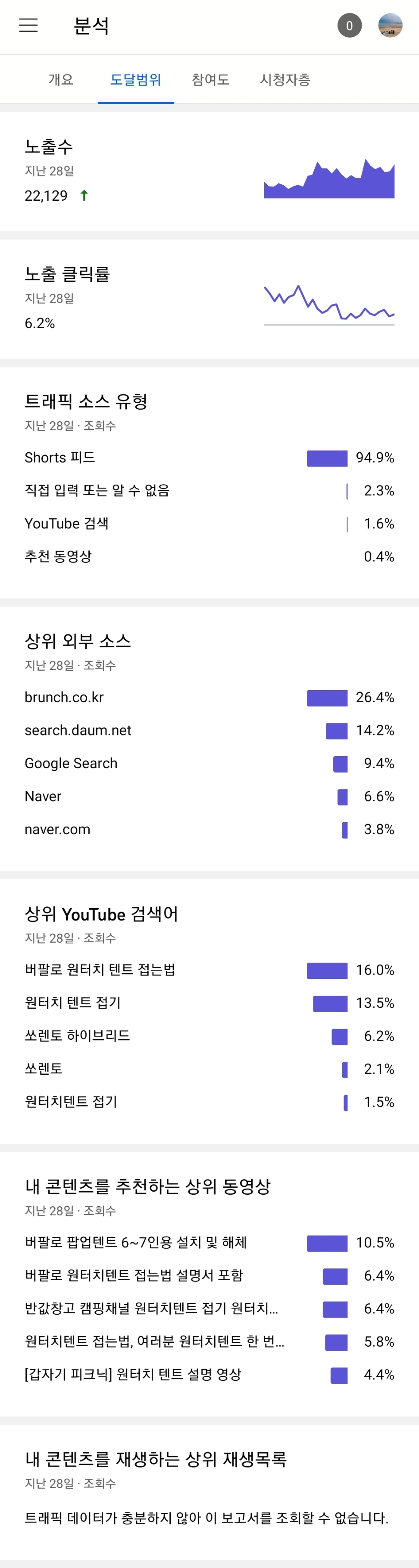 유튜브와 유튜브 스튜디오 대시보드에서 상세히 확인 핦수 있습니다.