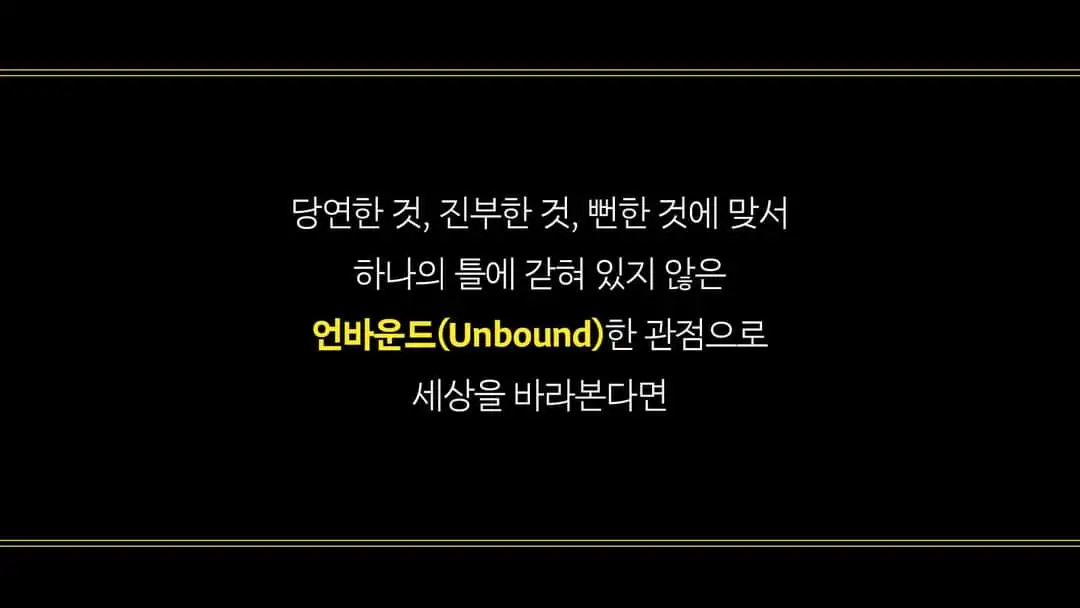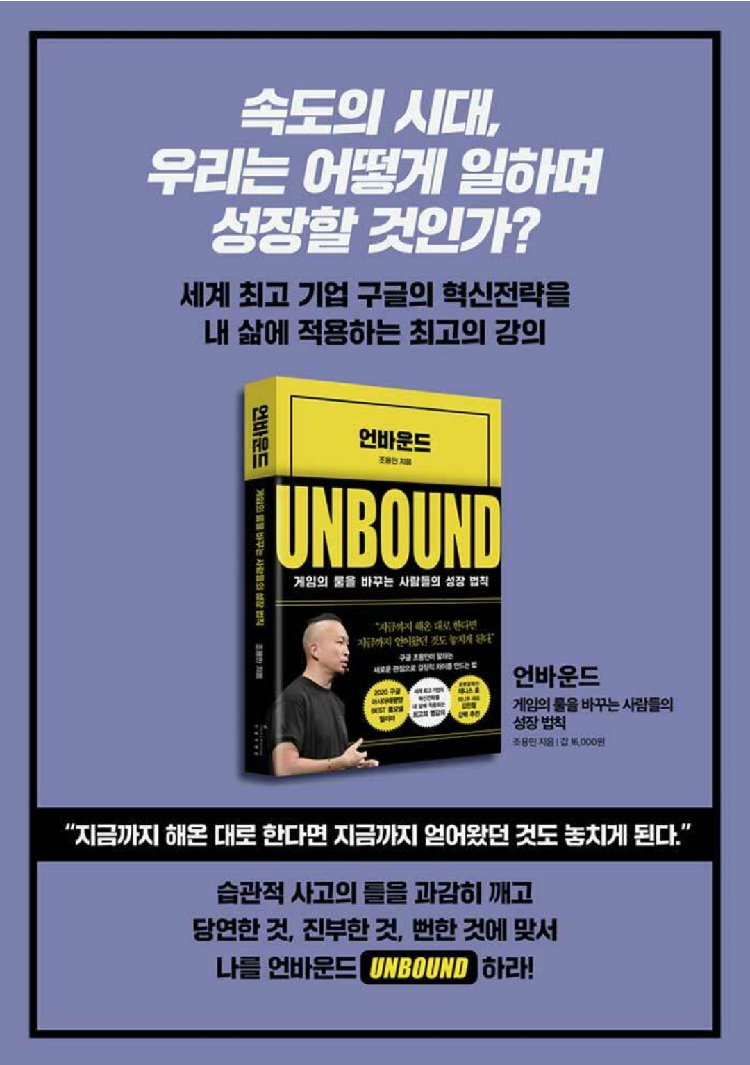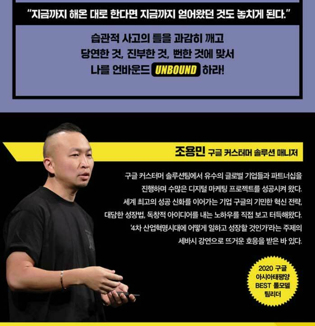 부캐의 모습에서 우리는 어쩌면 새로운 시대의 성공 전략을 엿보는 것일 수 있다. 그래서 나는 자기 자신을 언바운드한 관점으로 보는 여정을 이 책에 담아 보았다. p10