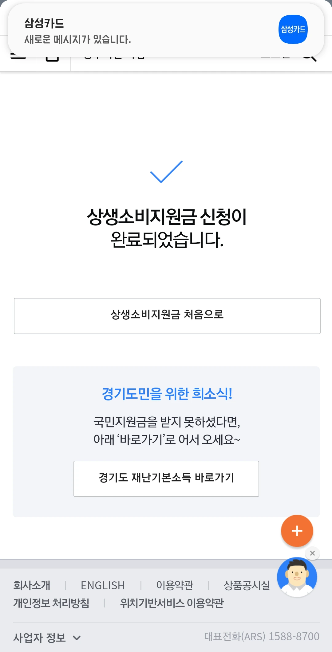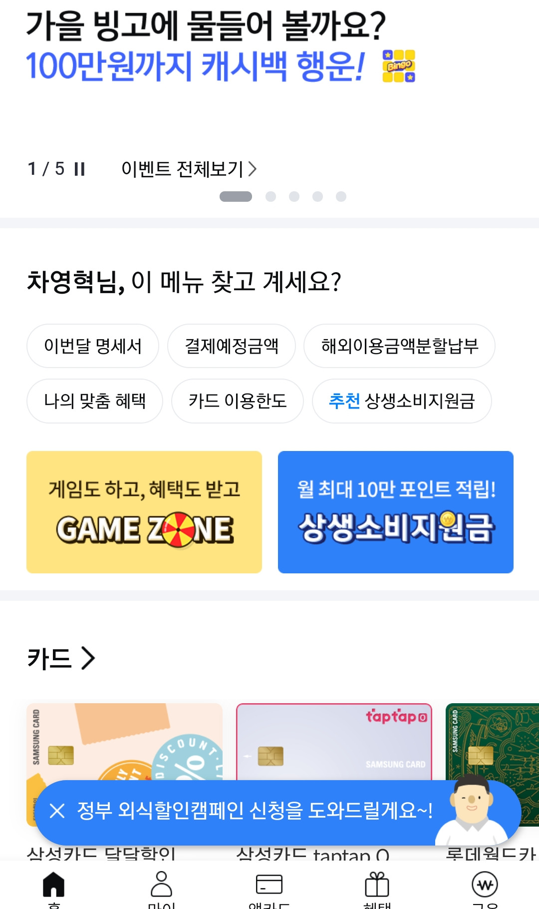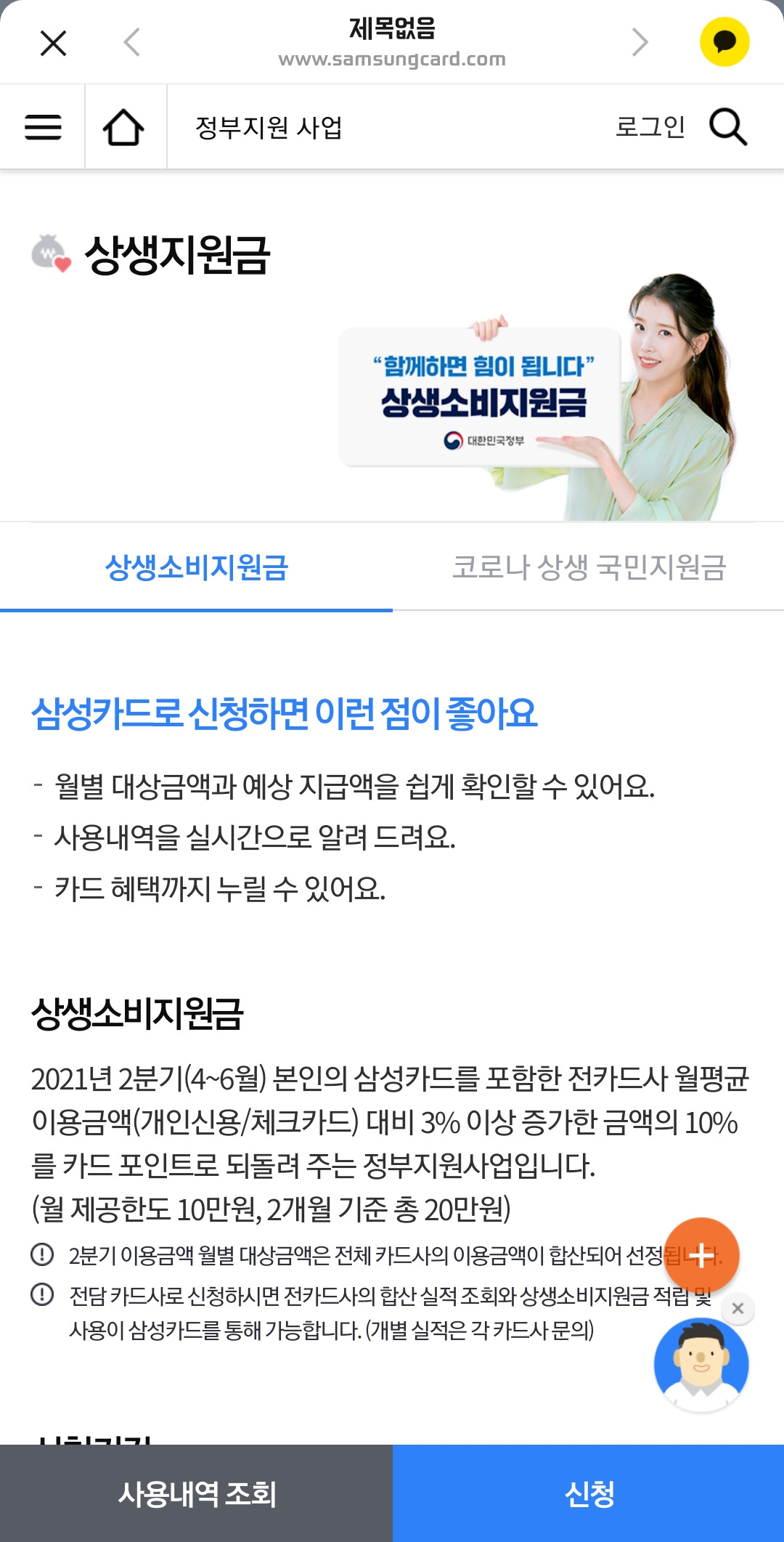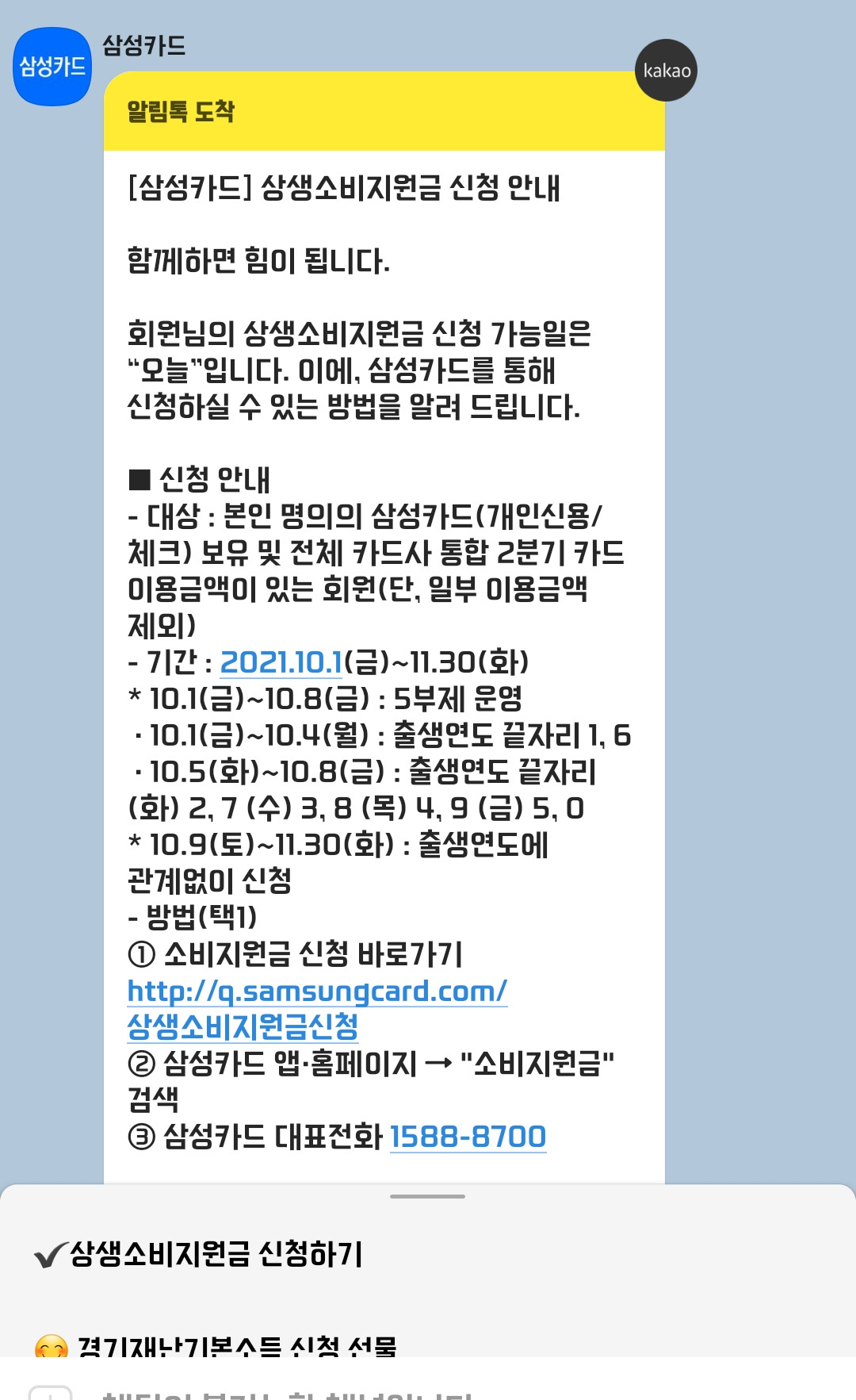 상생지원금신청,카드하나,삼성카드