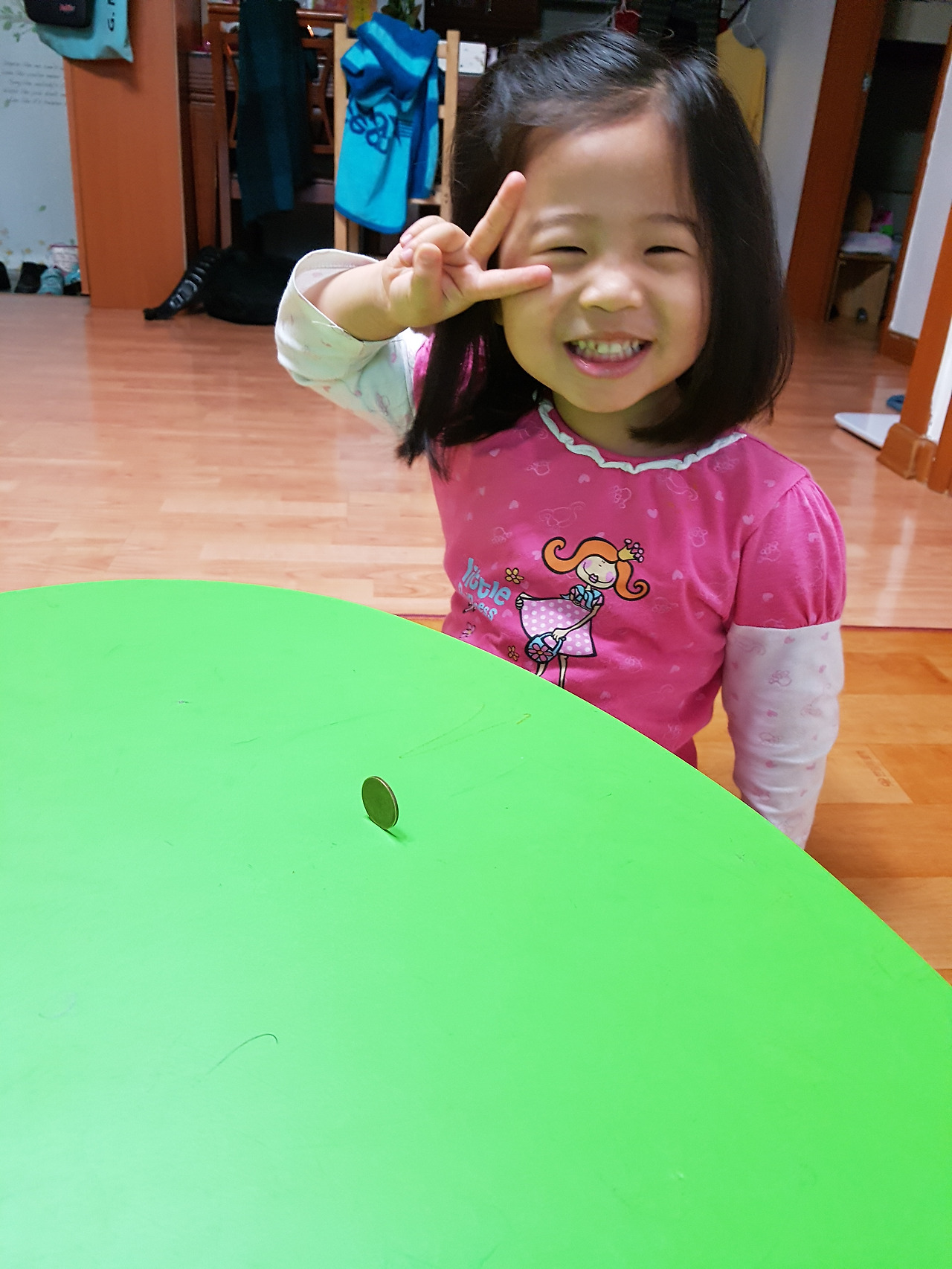 결과적으로 이외의 결과가 나왔다. 승부욕이 강한 둘째는 계속 실패하였고, 막내는 쉽게 그것도 단번에 동전을 세웠다.