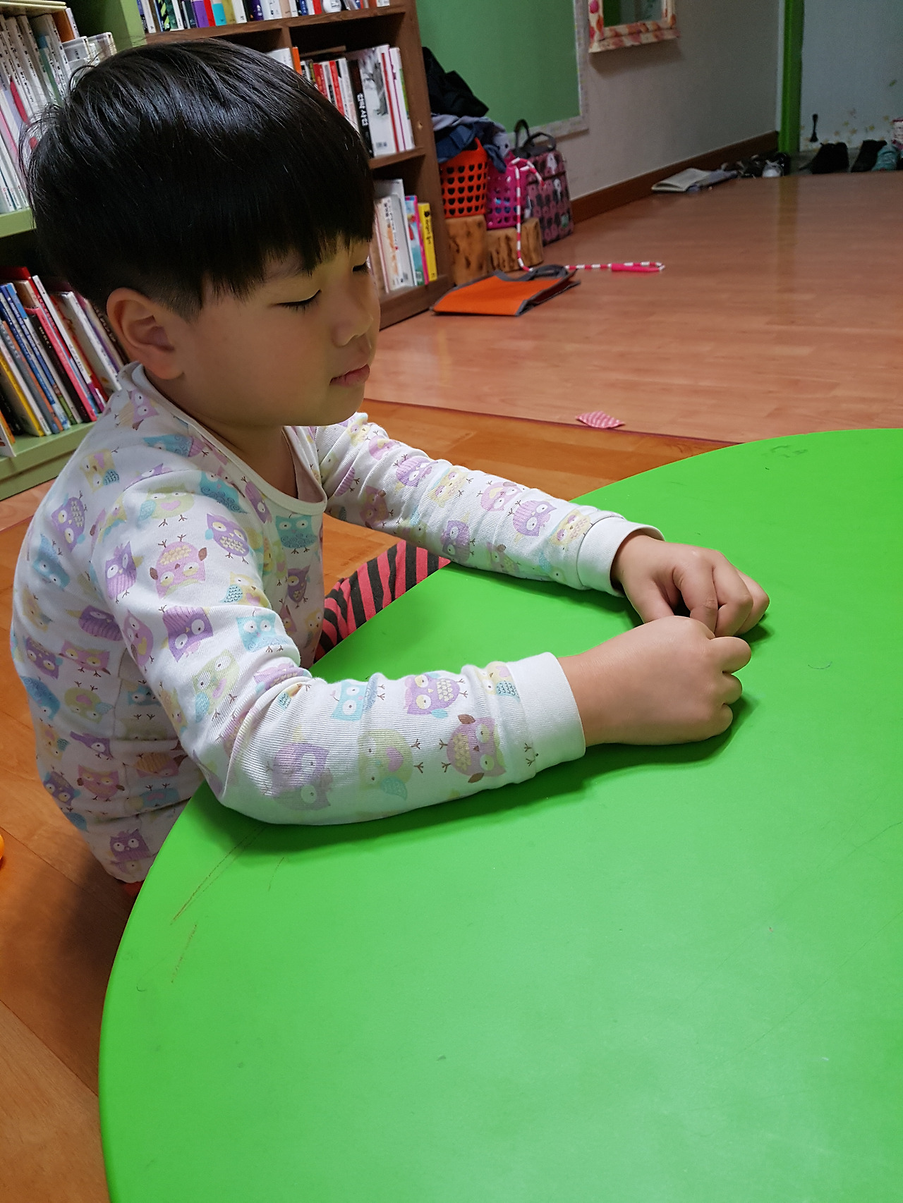그러자 둘째는 동생이 먼저 해내서 더 조급해졌고, 슬슬 짜증도 내기 시작하였다.