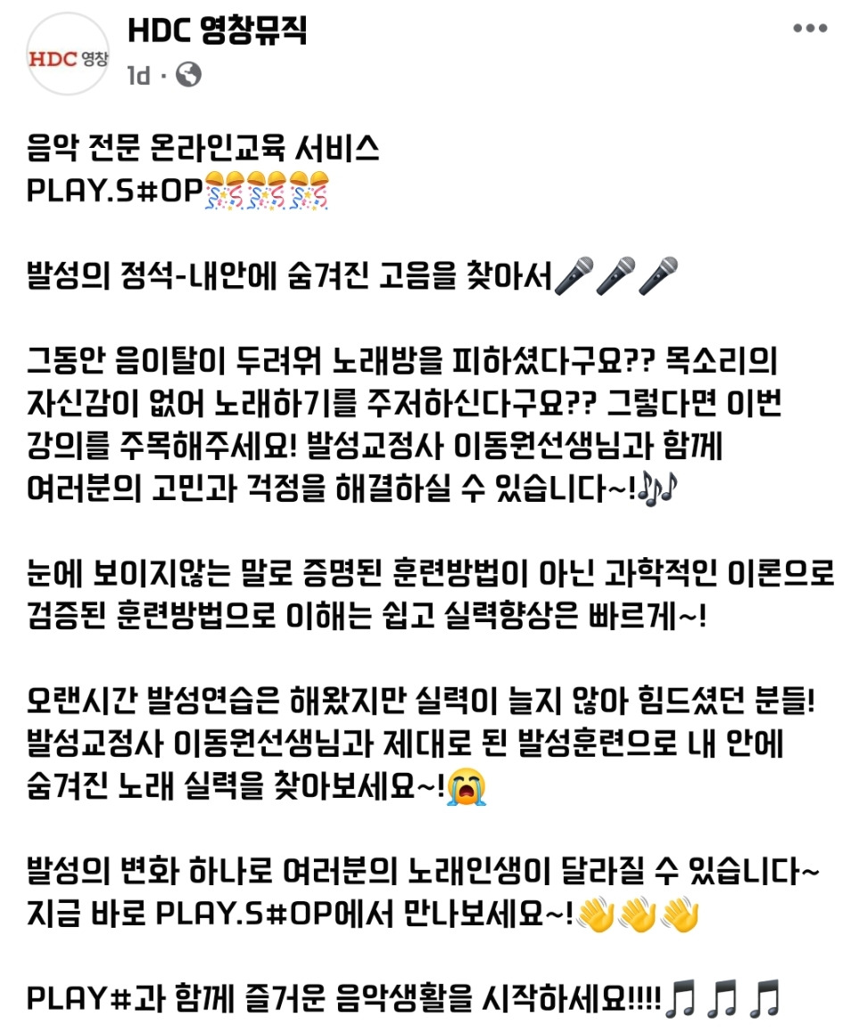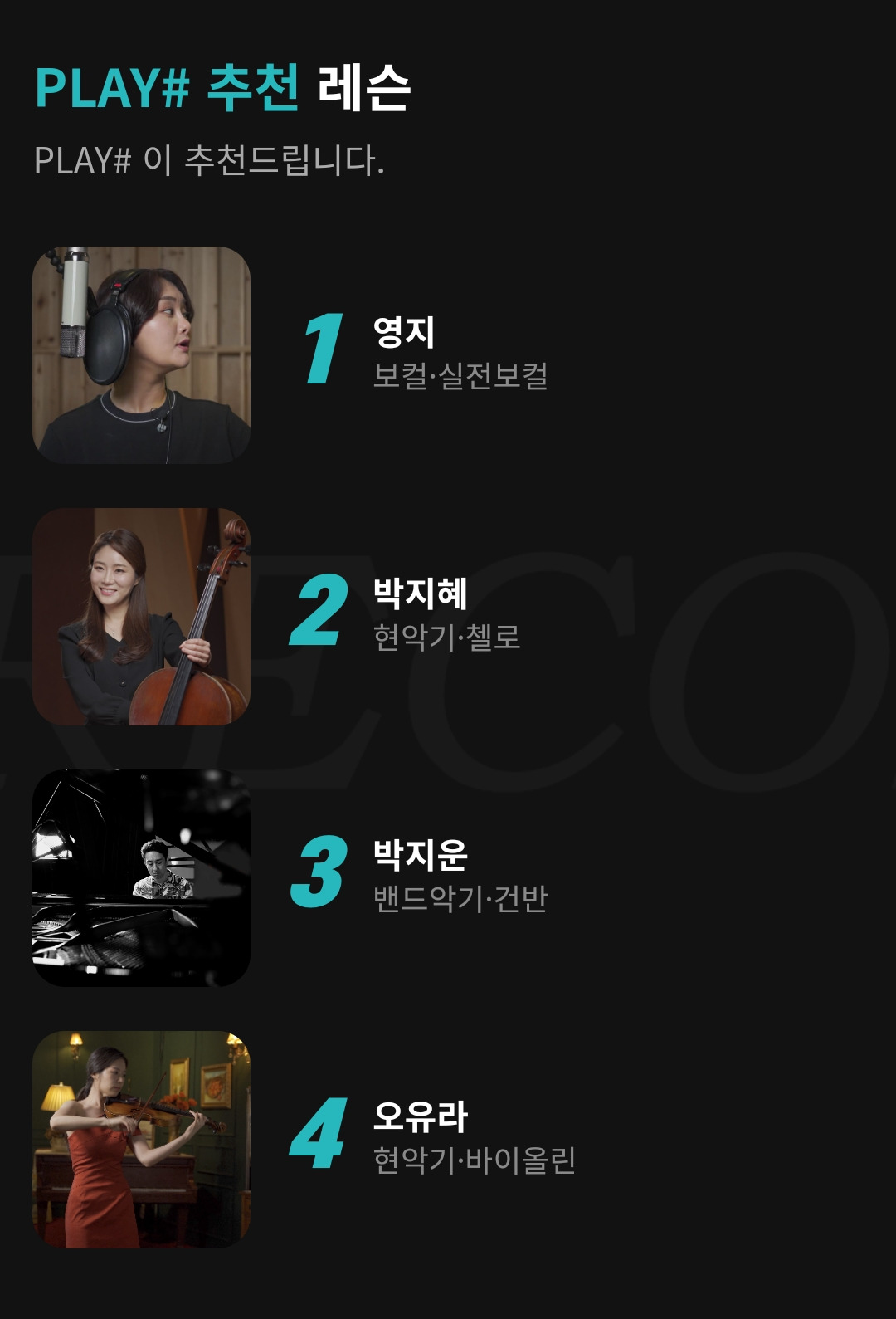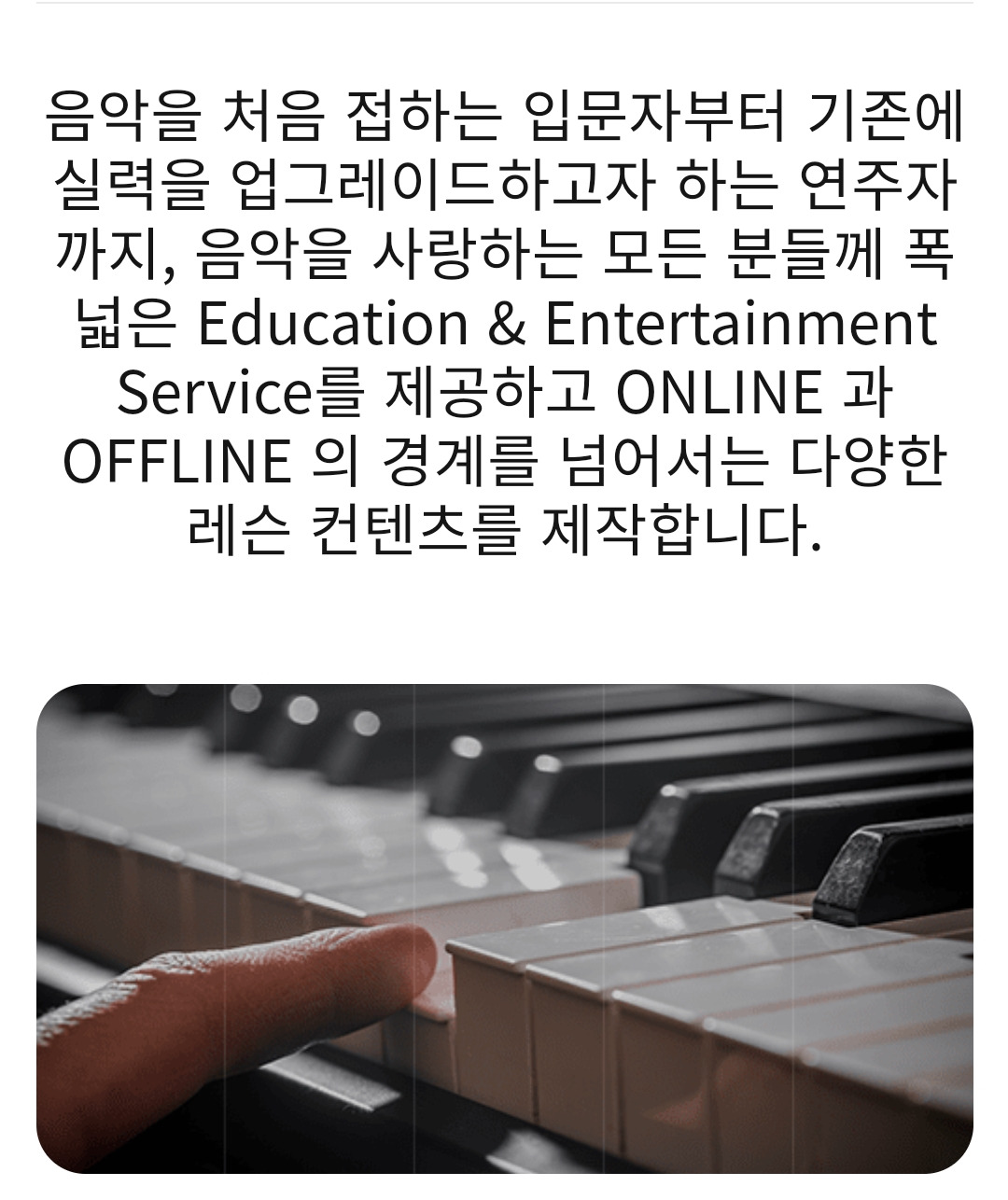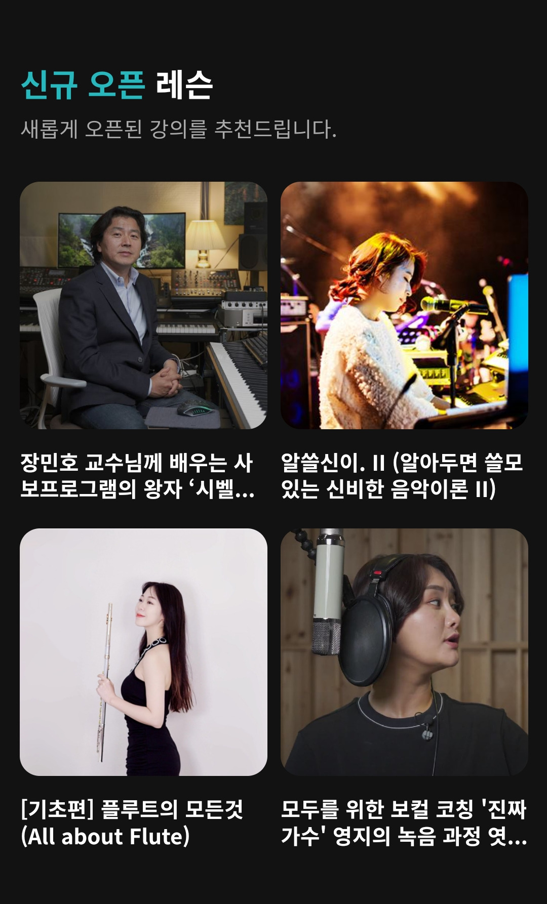 피아노, 코드반주, 드럼, 기타 그리고 발성까지 다양한 콘텐츠가 준비되어 있습니다.