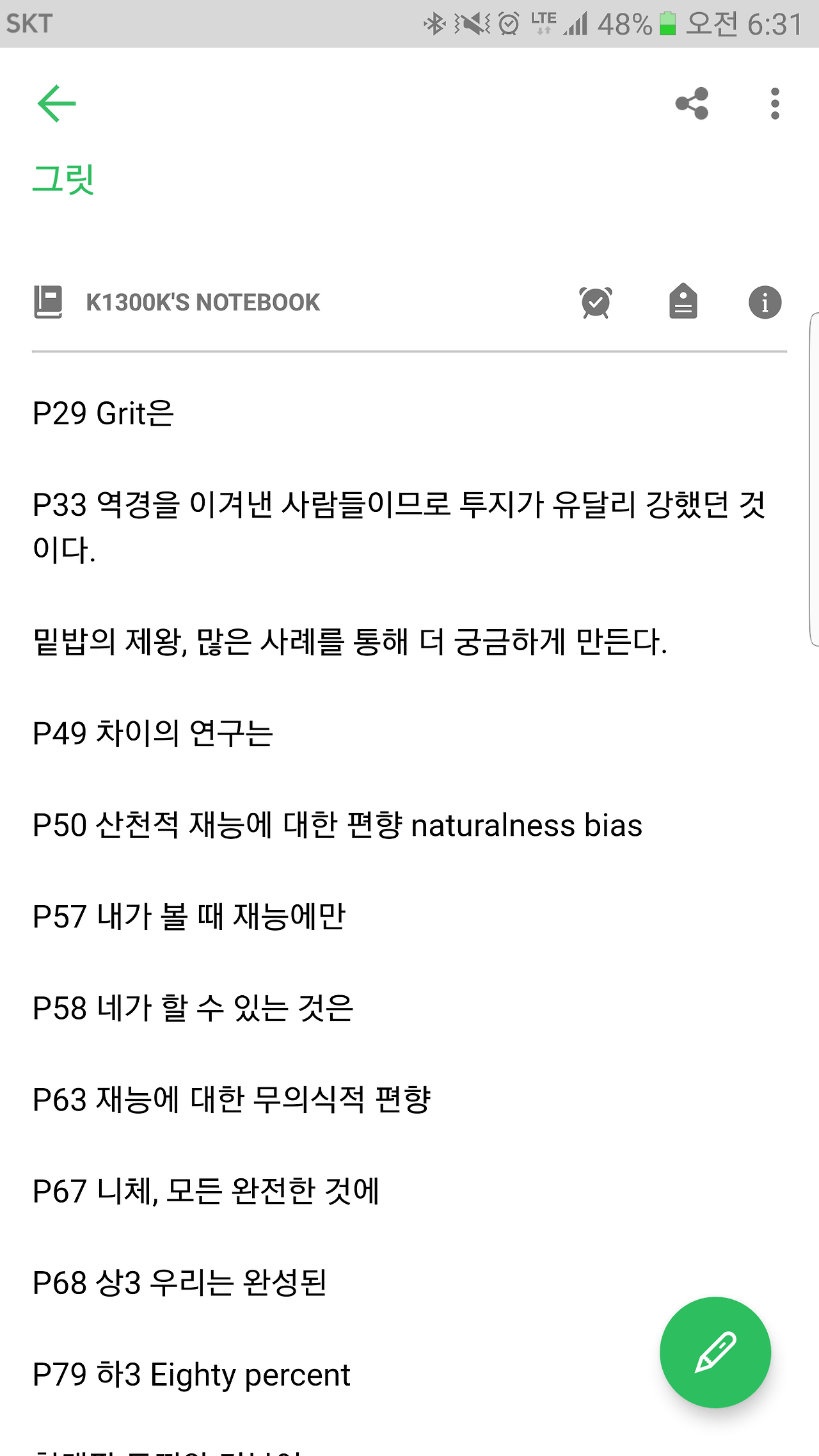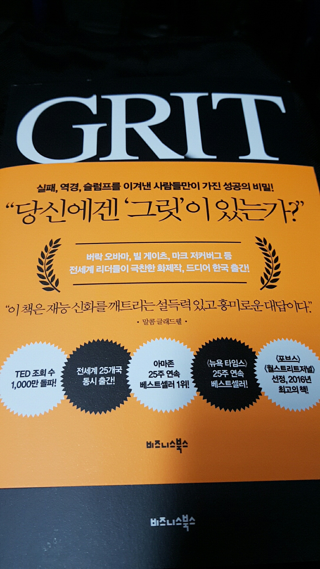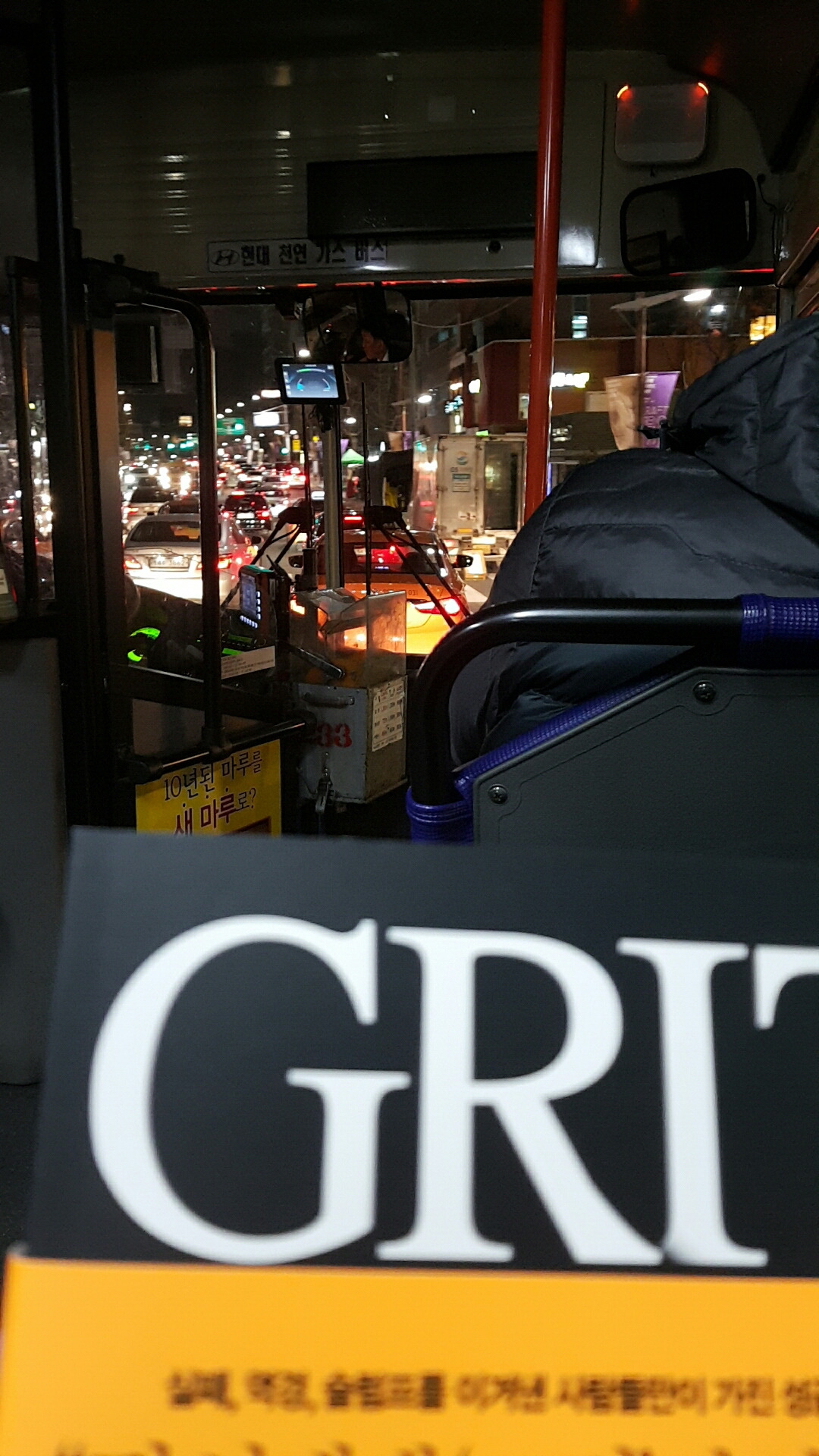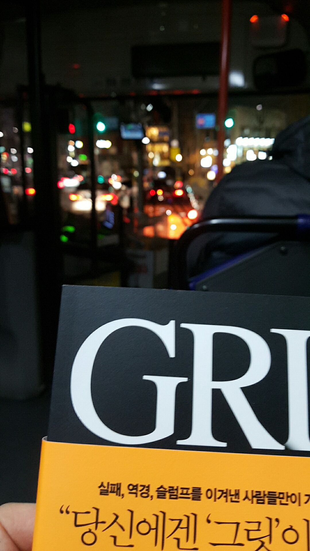서점 이후에 버스 안의 독서로 부터, 나는 그릿을 들고 다닌다. 오늘이 일주일 째다. 이 책은 단연코 다음달 독서동호회 독세미나의 선정책이다. 담달에는 아예 이 책 책 한 권 파기로 내 맘에 정했다. 그래서 한 두번 더 읽기로 작정하였다. 다음 번에는 밑줄 쫙으로 책을 더럽힐 예정이다.