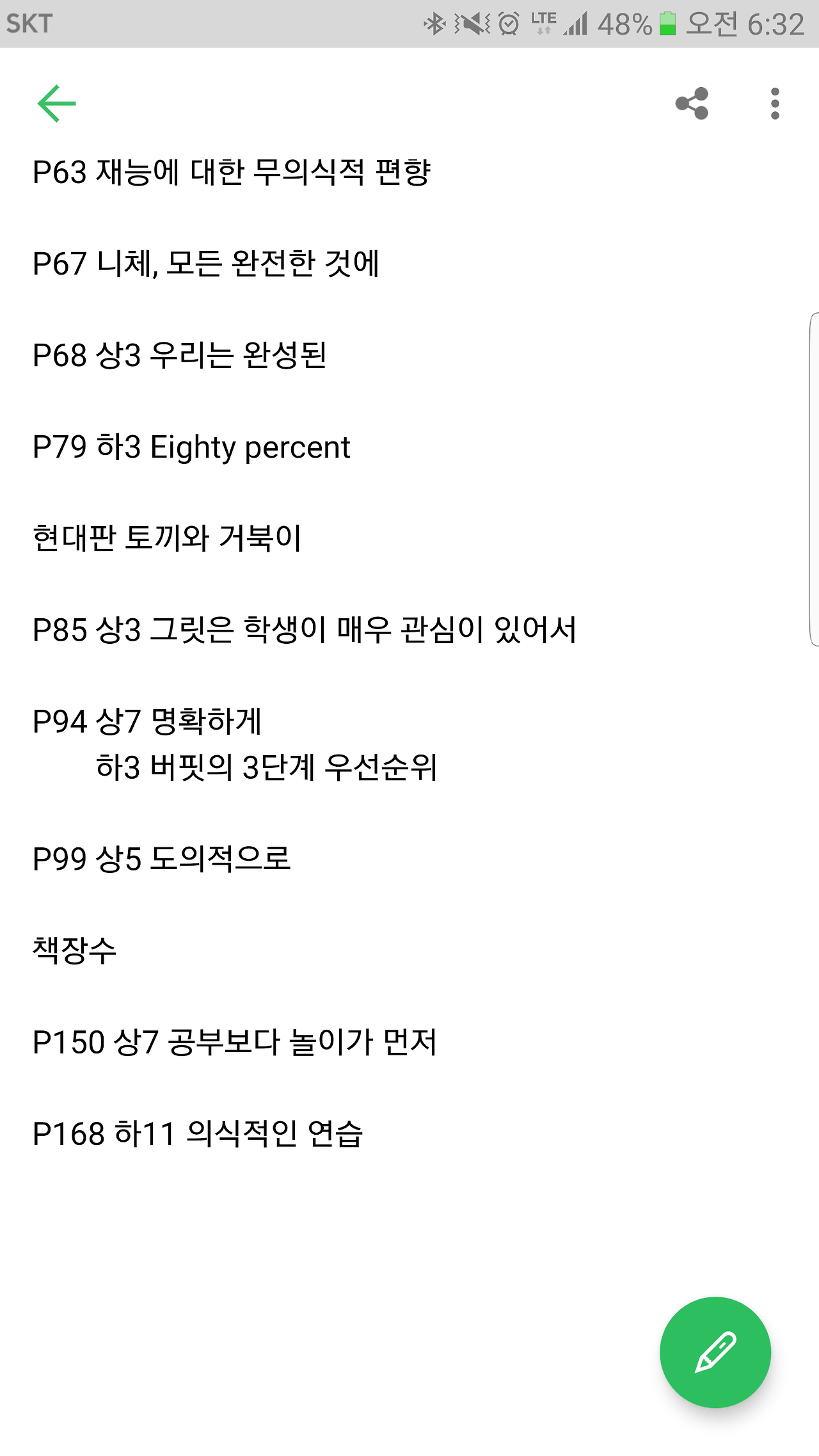 저자의 글 전개방식이 대단하다. 초반부터 궁금증을 자아낸다. 그래서 밑밥의 제왕이라는 표현을 에버노트에 갈무리 해본다. 간만에 에버노트에 기억나는 문장들을 표시해 본다. 한단계 업그레이드 해 본다. 쪽 정보와 위치 상단에서 3번째이면 상3, 하단에서 위로 3번째이면, 하3이다.