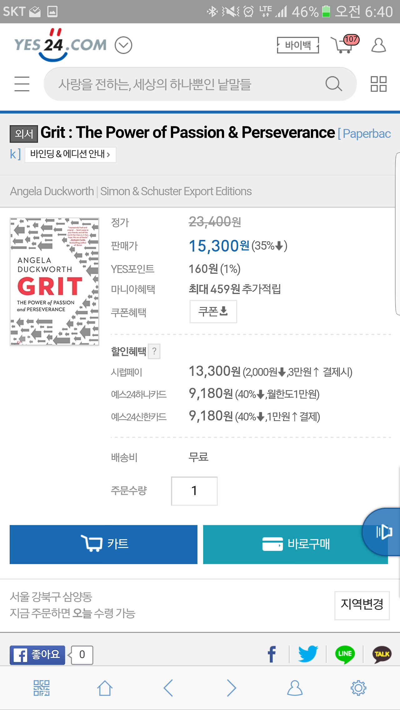 열심 동허회 회원들끼리 서점에 와서 책헌팅을 하고, 서점에 왔다. 내 손에 그릿이 있다.