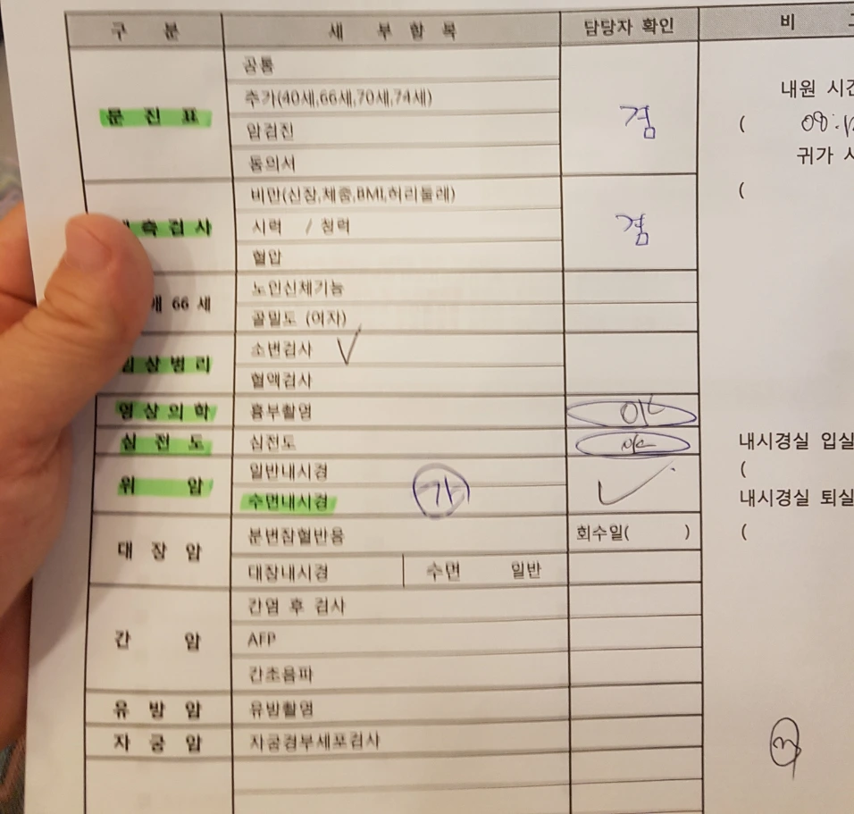국가에서 신경써주니 귀찮지만 벌금땜시 가야 한다. 회사에서도 23일까지 서류를 가져오라 한다. 위내시경은 10% 자기 부담금이 있다. 수면이라 4만원이고 헬리고박터 어쩌고와 기본검진비로 50,400원이다.