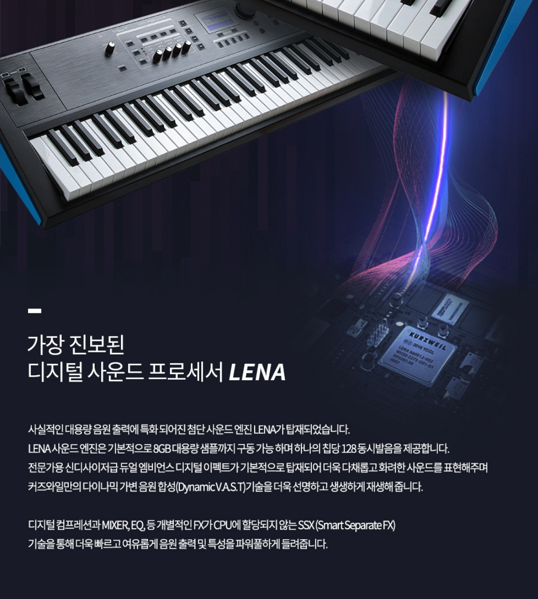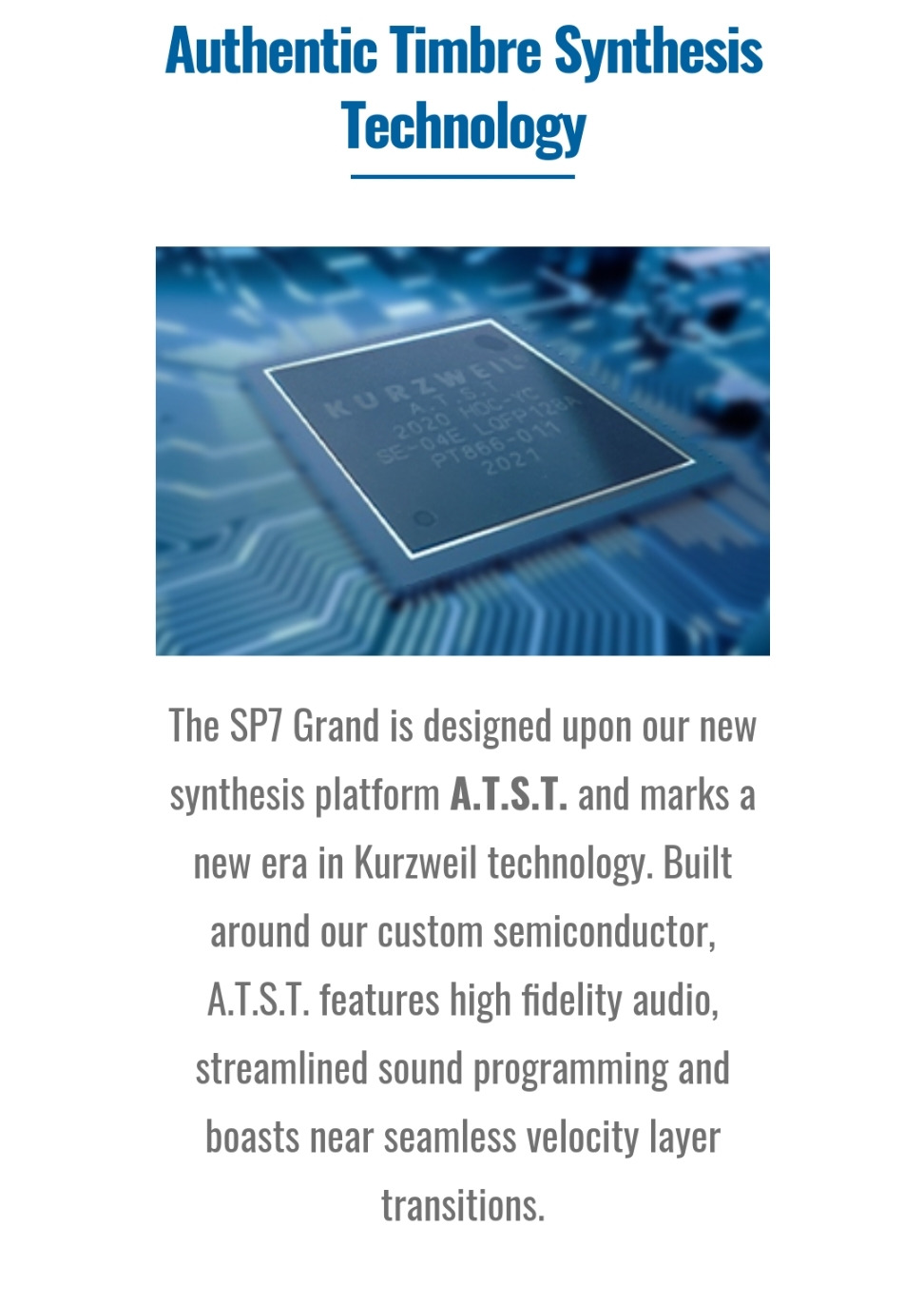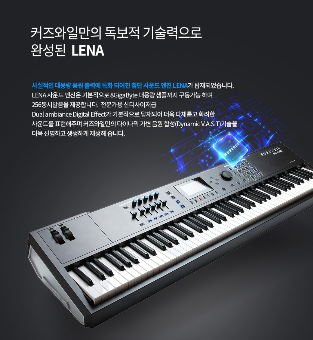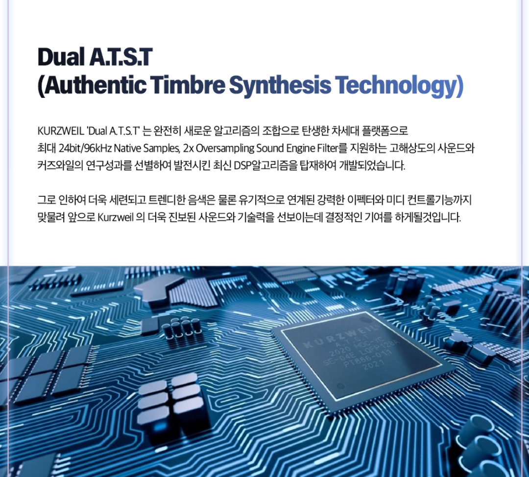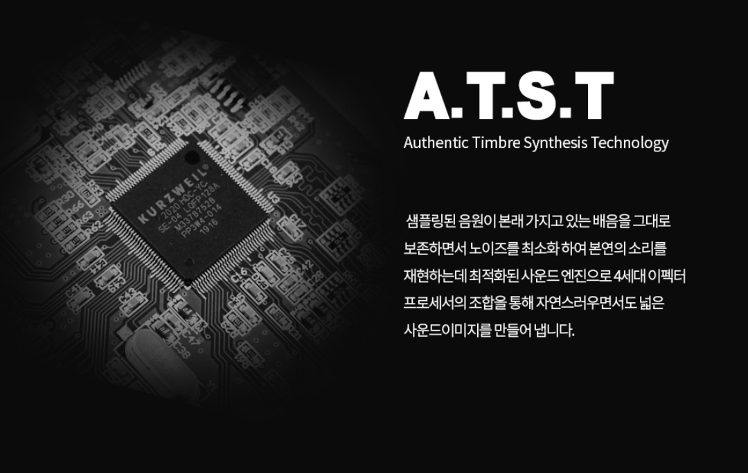 커즈와일 음원 칩 마라칩에서 2008년에 개발한 레나칩으로 전환되었고, 일부 하이엔드 디지털피아노 모델에서 사운드 칩 레나칩이 활용되고 있습니다. 그리고 등장한 사운드 엔진이 바로 A.T.S.T/ Dual A.T.S.T입니다.