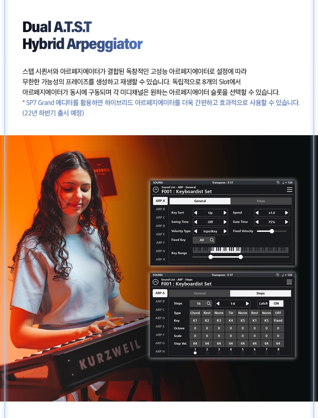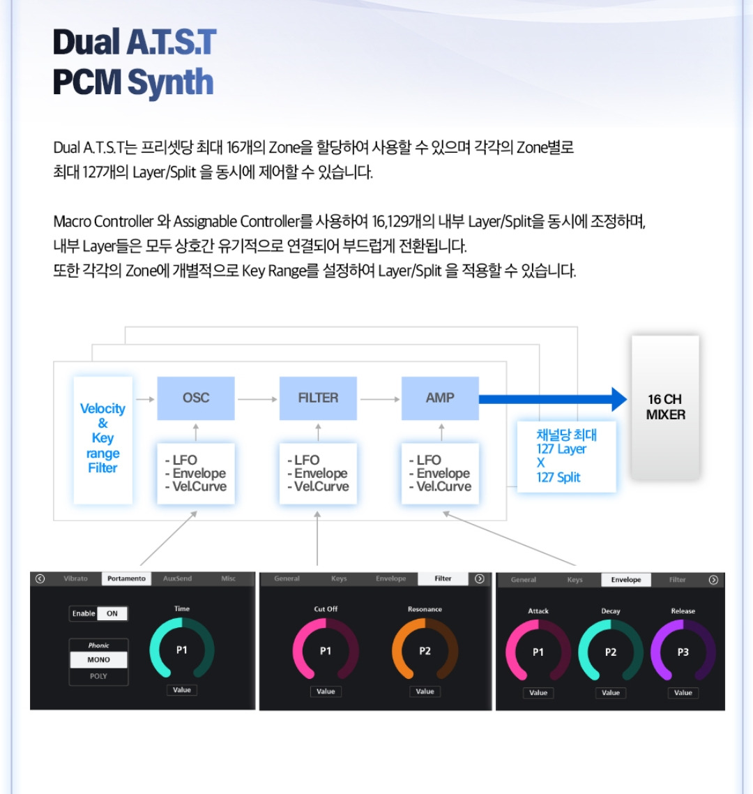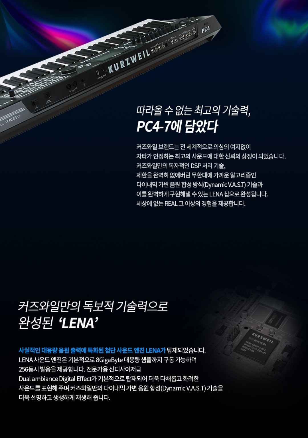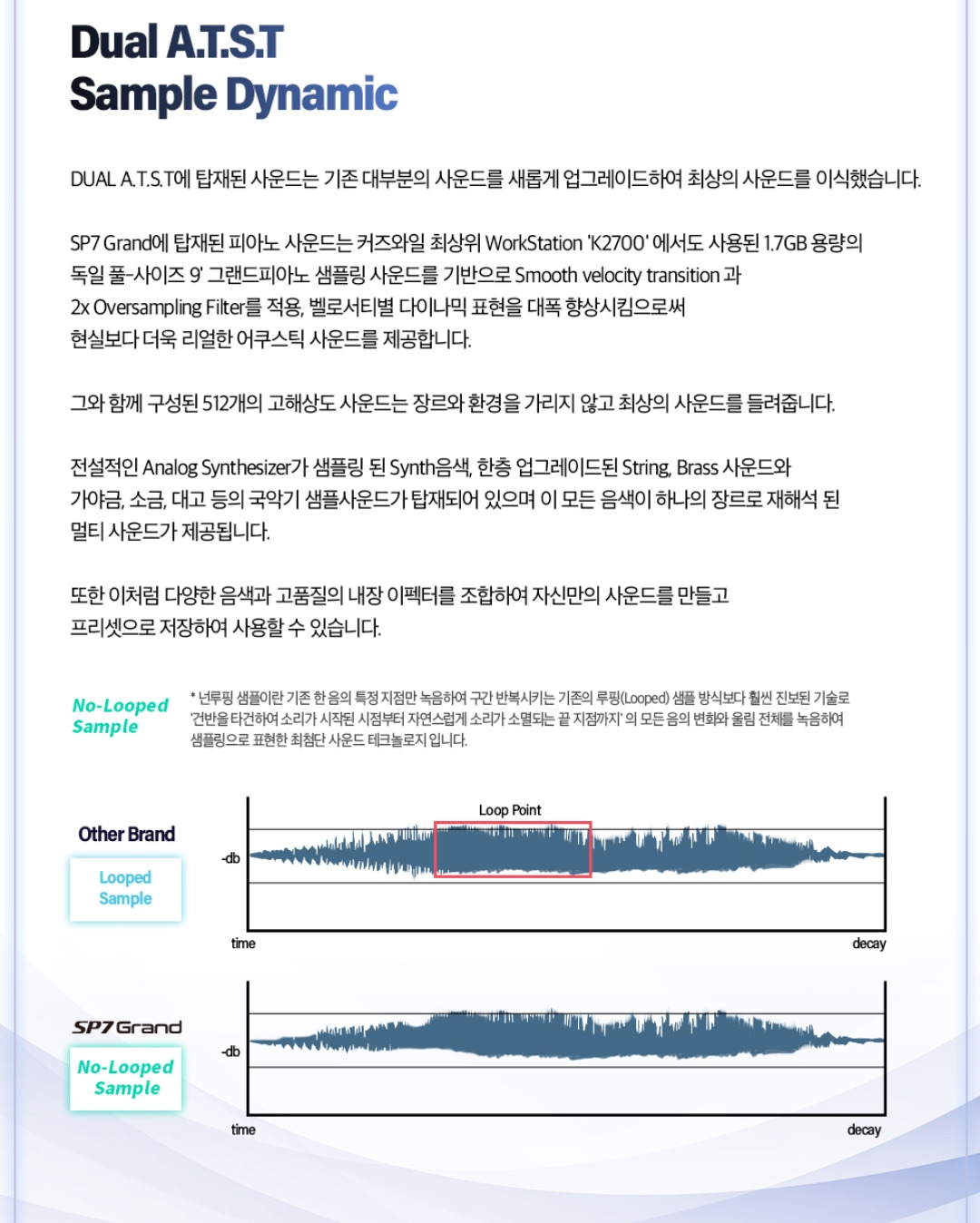 커즈와일 음원 칩 마라칩에서 2008년에 개발한 레나칩으로 전환되었고, 일부 하이엔드 디지털피아노 모델에서 사운드 칩 레나칩이 활용되고 있습니다. 그리고 등장한 사운드 엔진이 바로 A.T.S.T/ Dual A.T.S.T입니다.