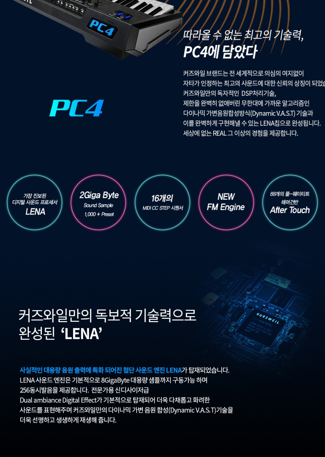 독자적인 음원칩에 대한 개발로 현재의 기술의 반열을 함께 하는 것이 중요한 거 같습니다. 어느 순간부터 우리의 기술의 기준이 스마트폰이 되어 있어서 눈이 높아져서, 그에 맞는 기술이 보장되어야 하는 것이 당면과제이기도 합니다. 그런 면에서 커즈와일은 신디사이즈 선두주자로 꼽을만합니다.