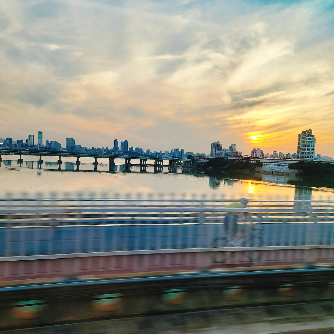 이른 출근길에 한강을 벗하면서 책을 읽어봅니다.