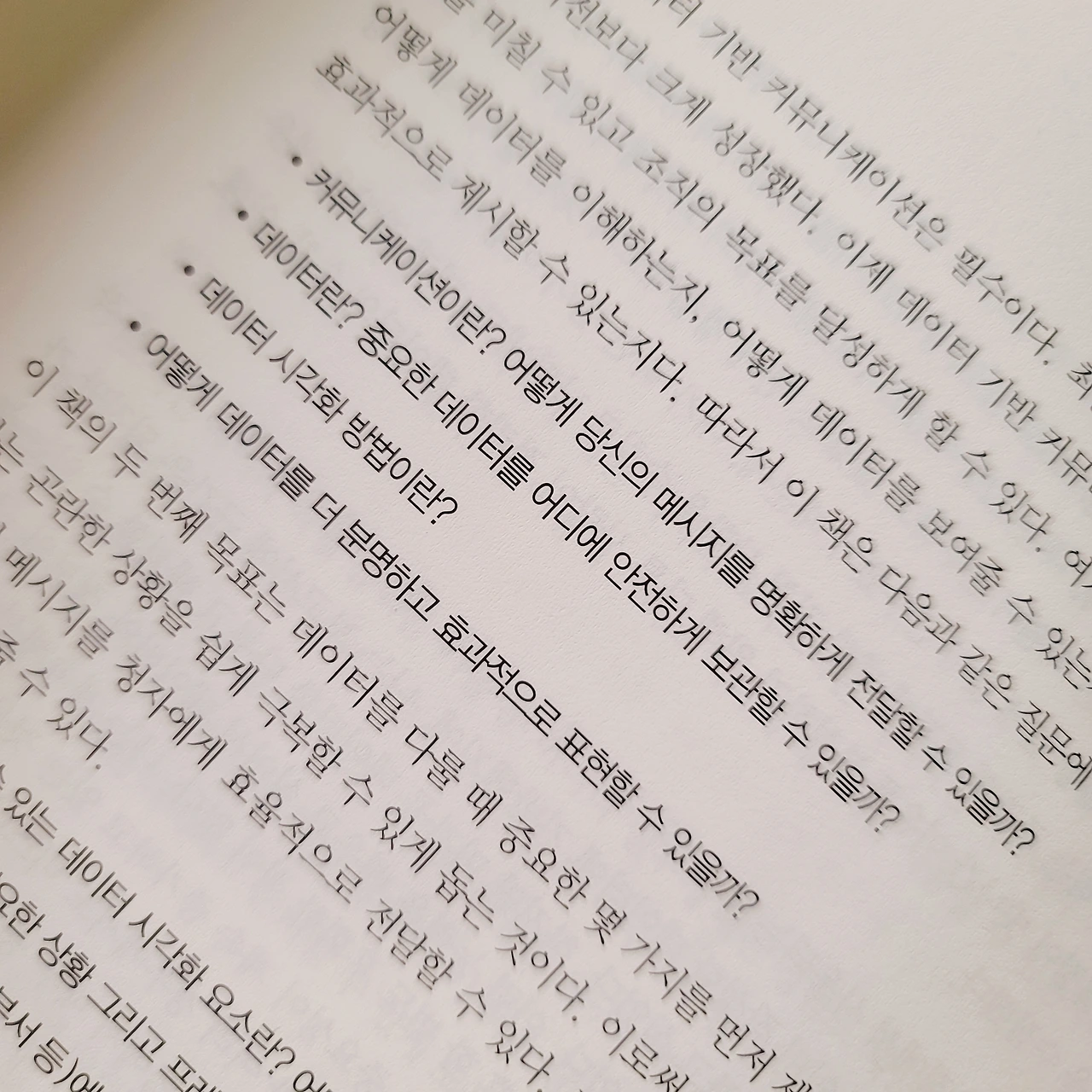 말이 길어졌다. 정리하자면 책 제목처럼 "데이터로 전문가처럼 말하기"가 되어야 한다는 것이다. 필수항목인 것이다.