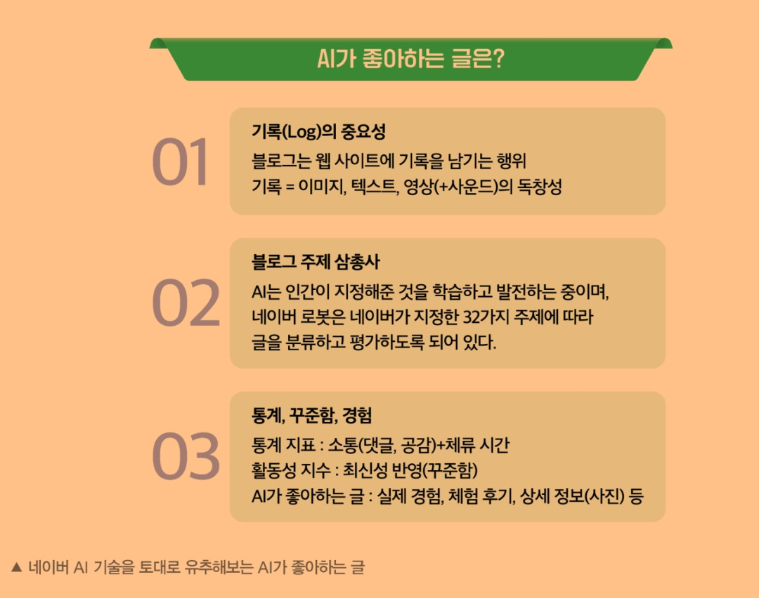 블로그도 잘되는 조건이 있다는 것 을 알게 됩니다.특히 네이버 블로그는 매반 검색엔진 알고리즘이 고도화가 되기에 그에 따른 발맞춤도 필요해 보입니다.실재적으로 적용이 가능한 아이템들도 있어서 네이버 블로그에 적용도 해 볼 생각입니다.