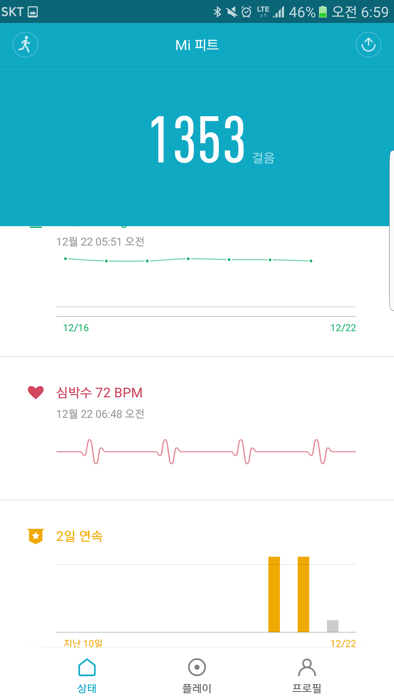 미밴드2를 몇일 쓰지는 않았지만 개봉기에서 사용기로 전환해 본다. 꼼꼼히 Mi 피트 앱의 기능을 들여다 본다. 결국 오늘은 하단의 상태 아이콘 하나만 보다가 끝나 버렸다.