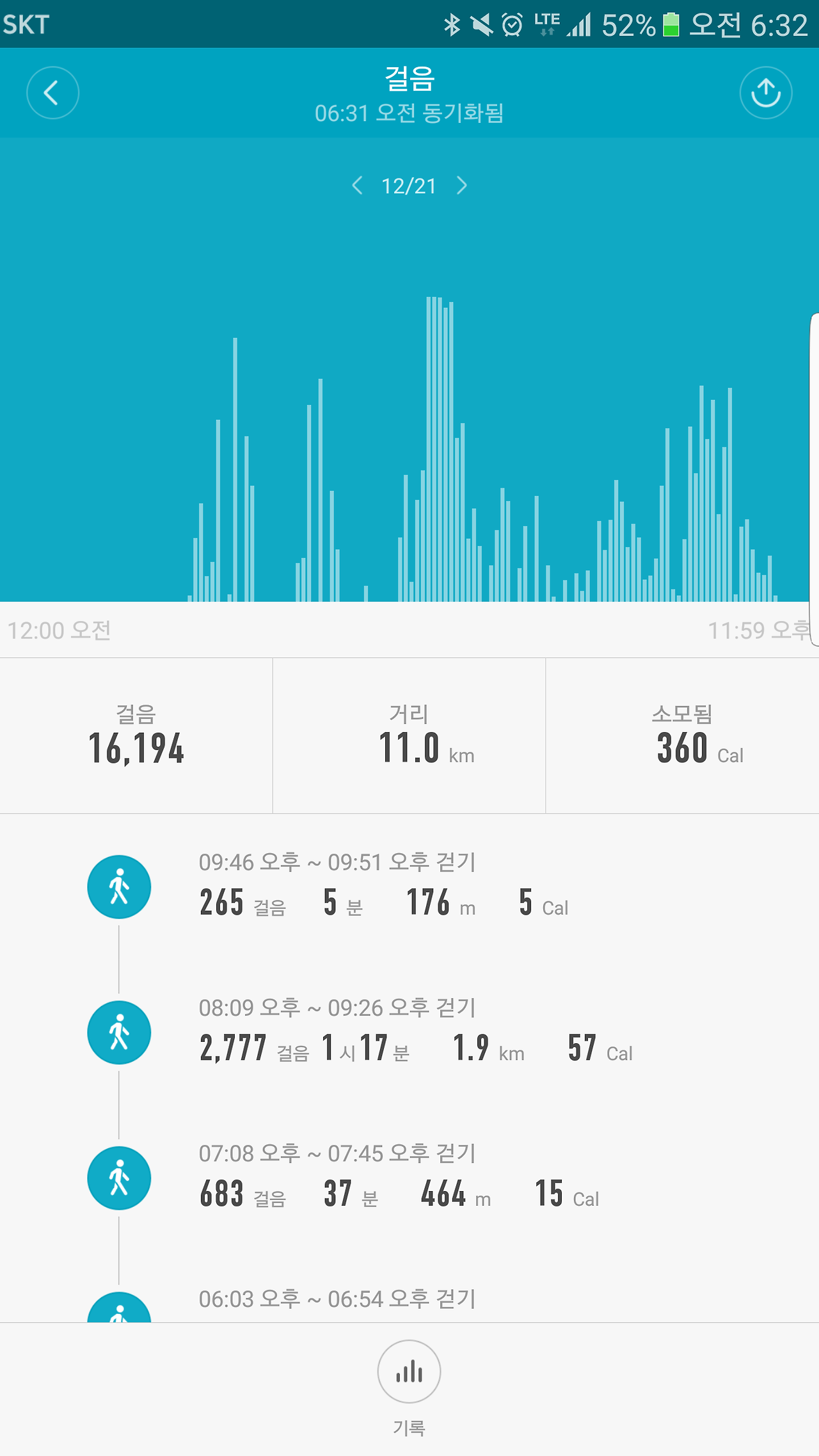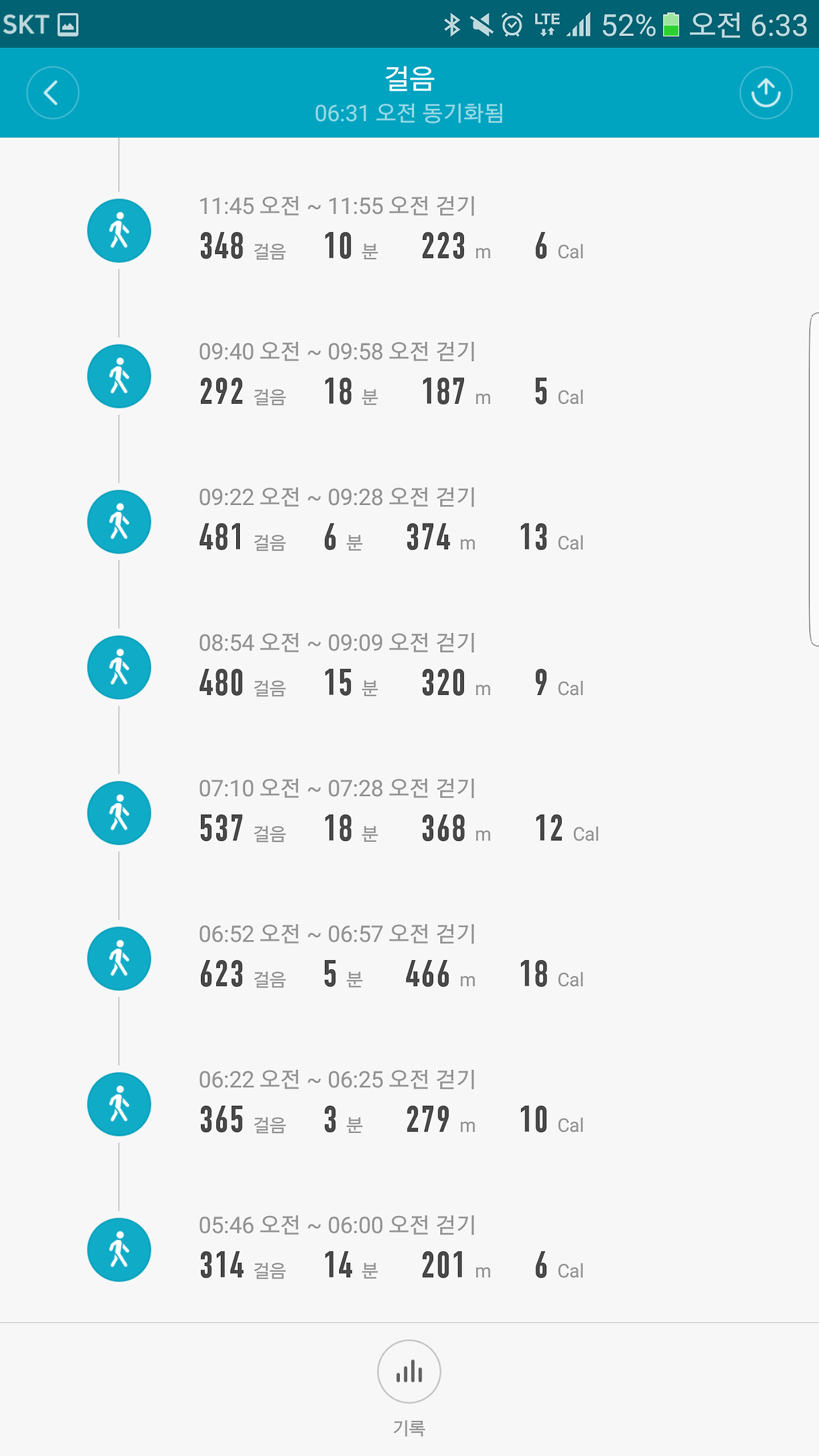 역시 이른 출근시간 정보로 시작해 본다. 이시간에 벌써 395걸음이다. 밤새 뒤척이고 아침에 샤워한 것까지 다 포함 된 것 같다.