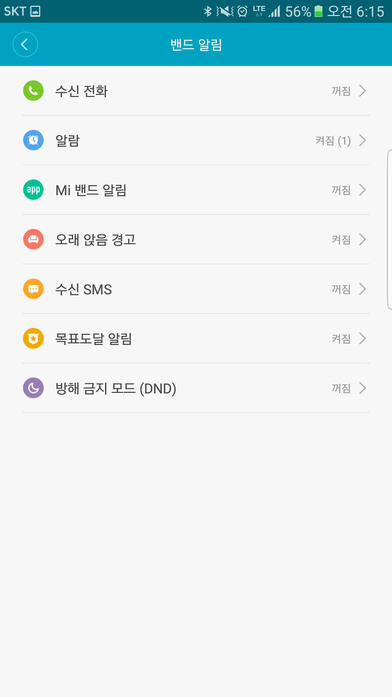 미밴드2의 깨알같은 정보제공내역과 설정기능등이다.