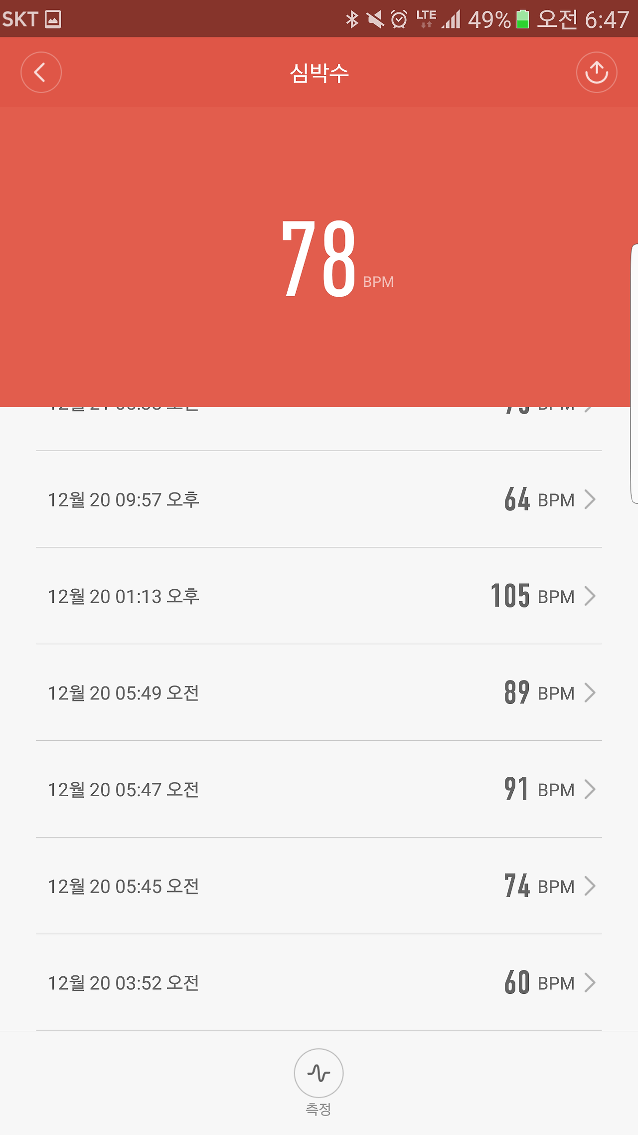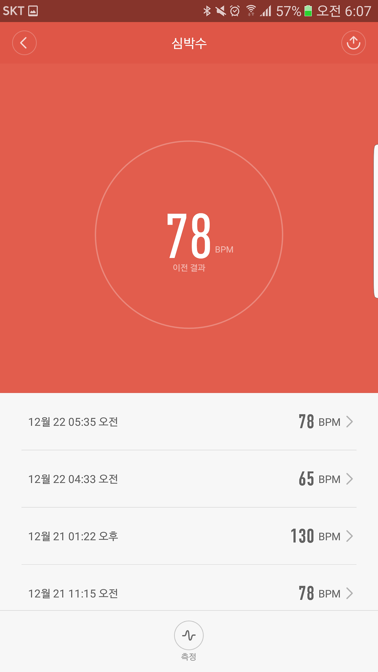 하단에 측정버틈을 누르면 측정이 되기도 한다.