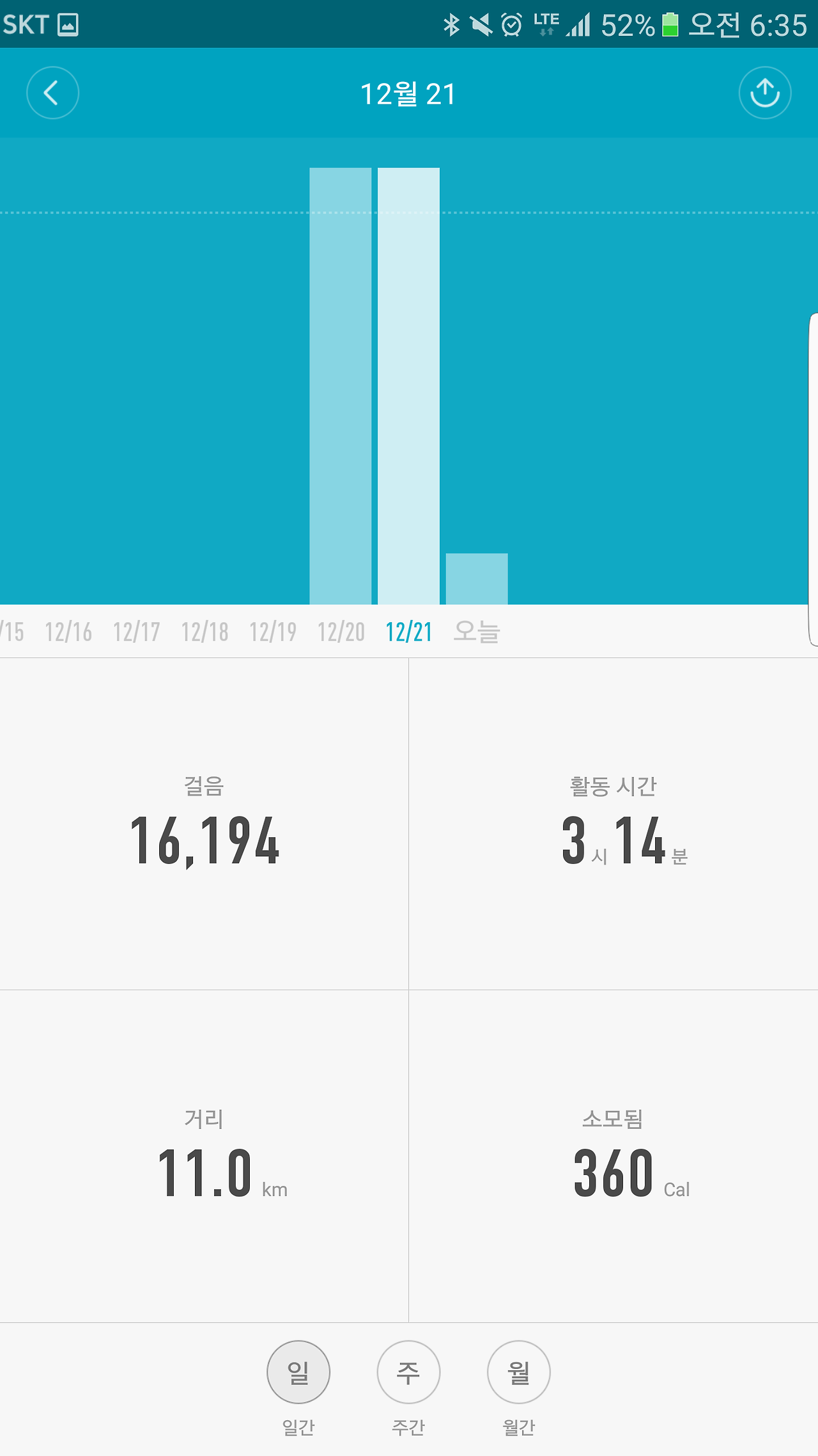 모든 앱들이 제공하는 기본기능이지만 일간, 주간, 자료를 볼 수도 있다.