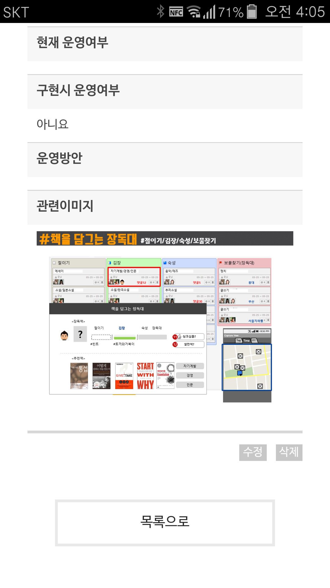 책을 찾으면 사진으로 올리고 해당 아이디로 등록하여 장독을 마감한다.