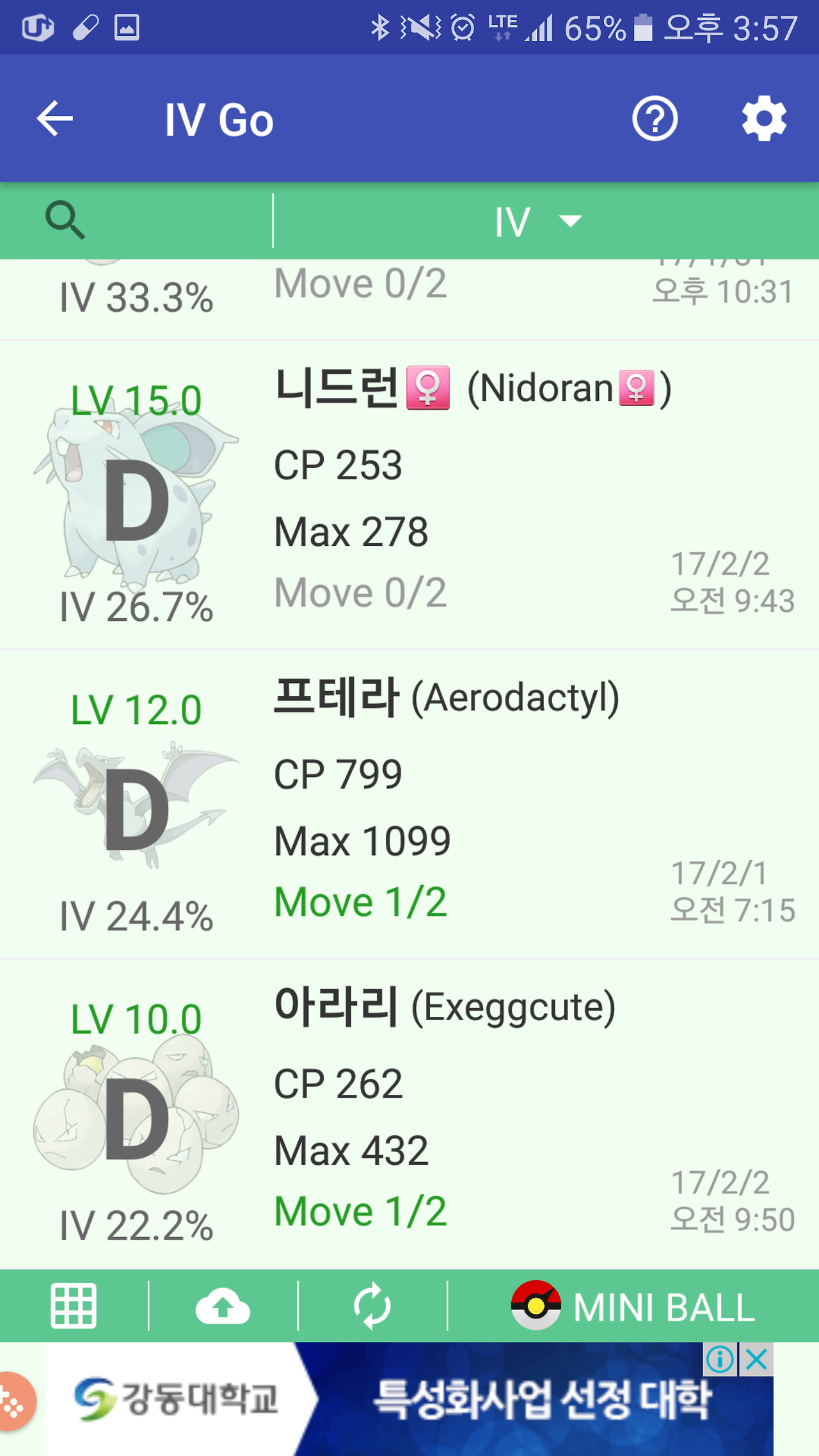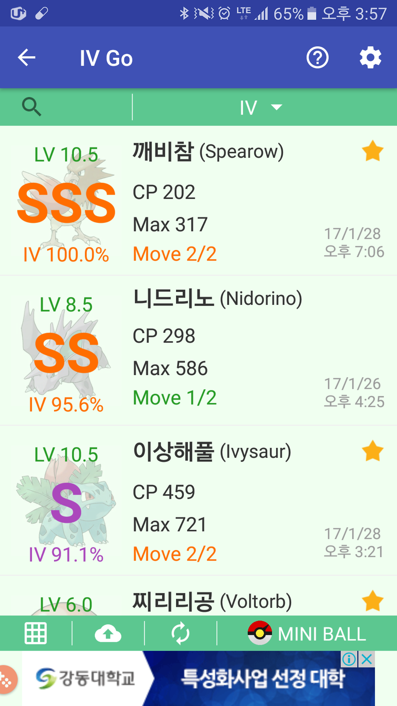 몇 일 해 본 사람들은 다 안다는 "IV Go" 을 통하여 CP보다 레벨이 더 좋다는 것을 알고 새롭게 포켓몬정리하고 수집하고 있다. 그리고 특정 포켓몬을 키우는 것이다.