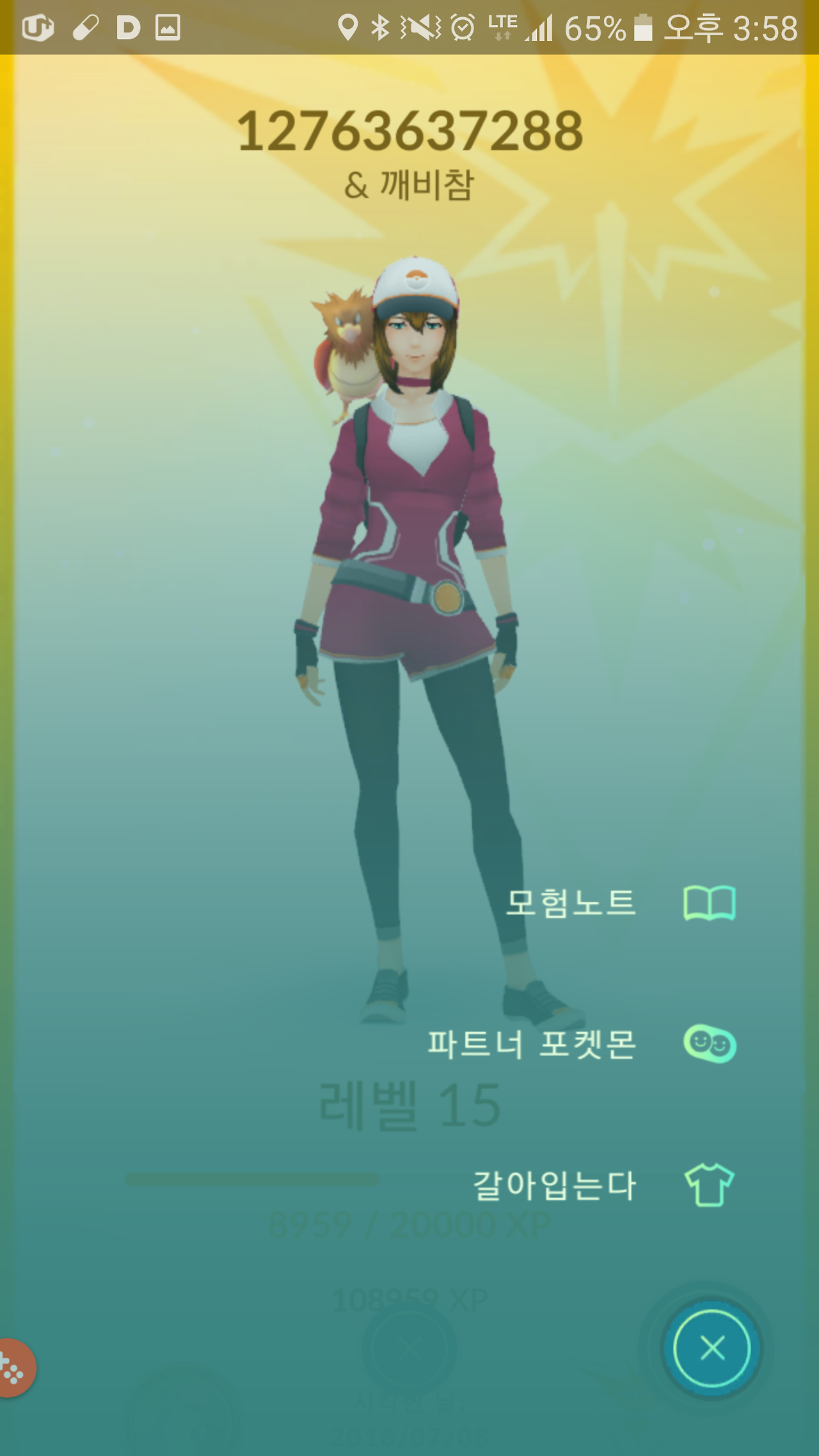 자신의 캐릭을 누르고 "파트너 포켓몬"을 눌러 선택하면 된다.