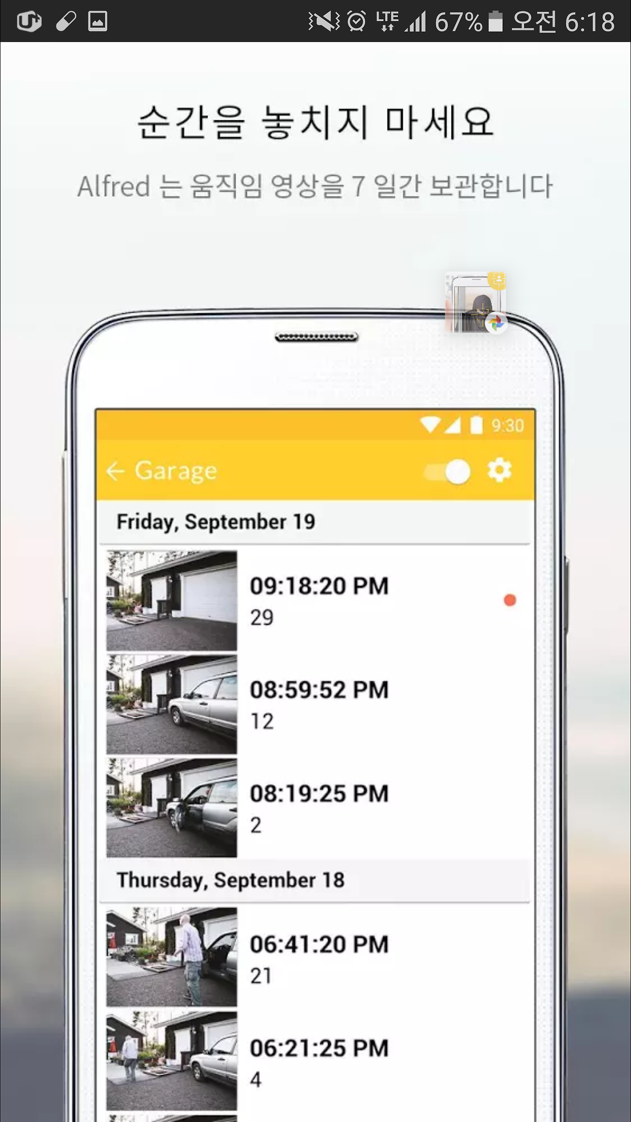 동작감지도 된다고 한다. 그에 따른 영상도 저장된다.