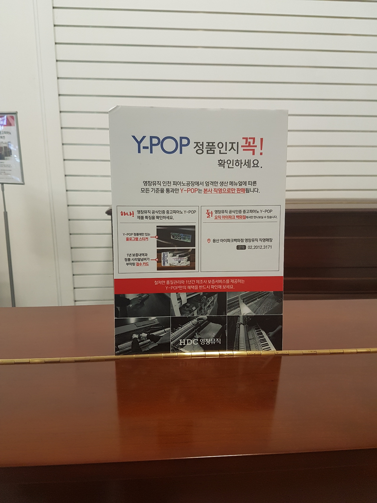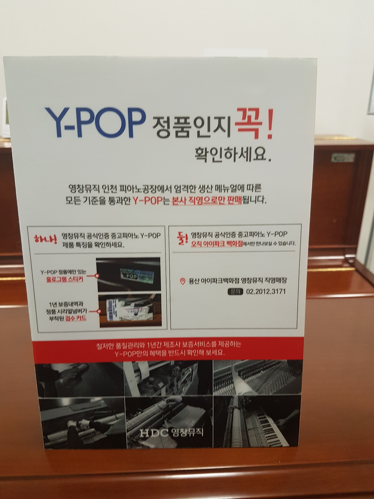 모든 Y-POP제품은 영창뮤직의 엄격한 생산 매뉴얼에 따라 수리가 진행이 된다고 한다. 제품 상태에 따라 피아노 주요부품의 수리, 외장복원, 내부클리닝작업까지 완벽하게 진행된다. 배움과 타건, 음색처리 등을 거쳐 최종 조정과 정음작업을 시행한다.