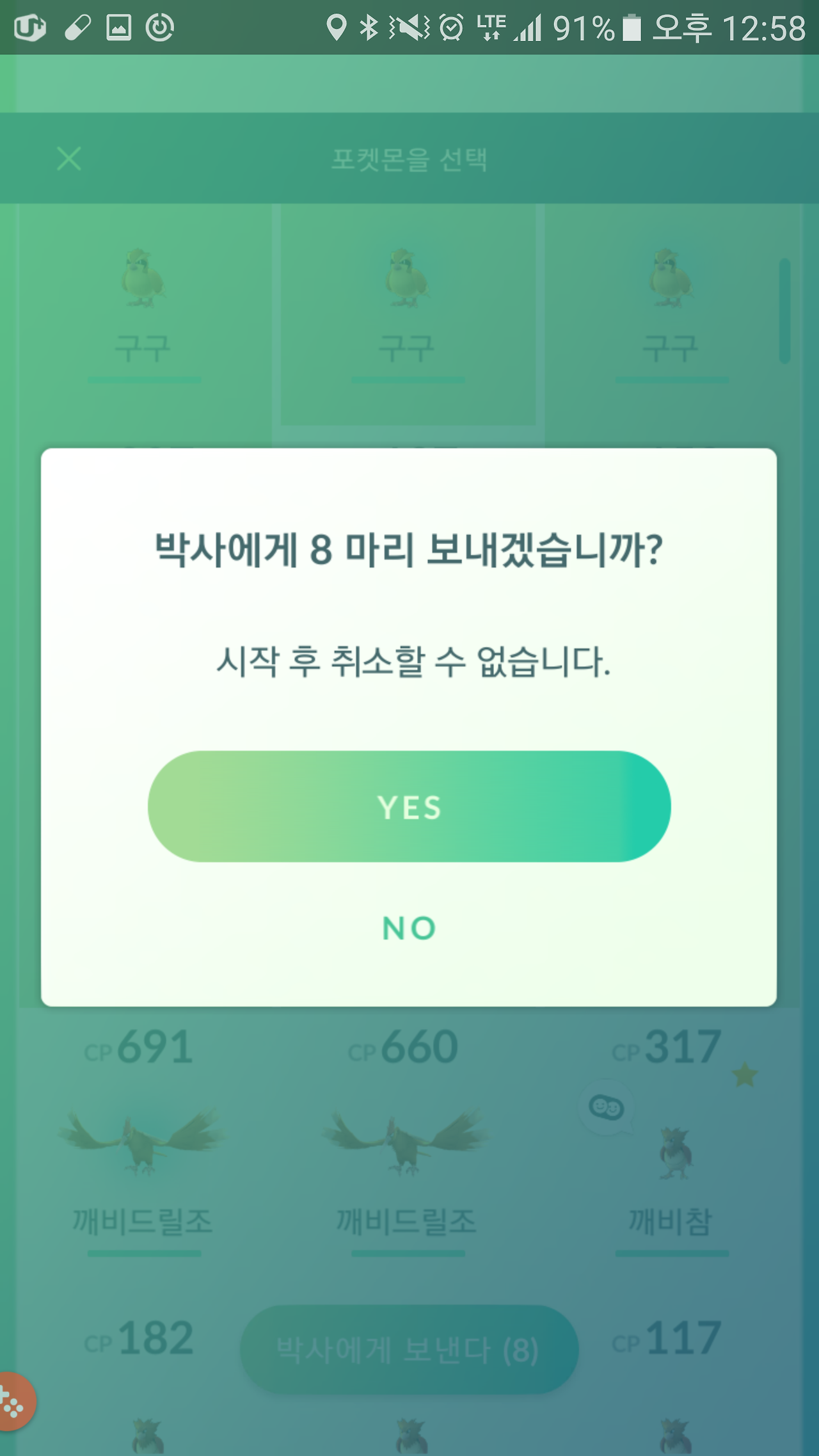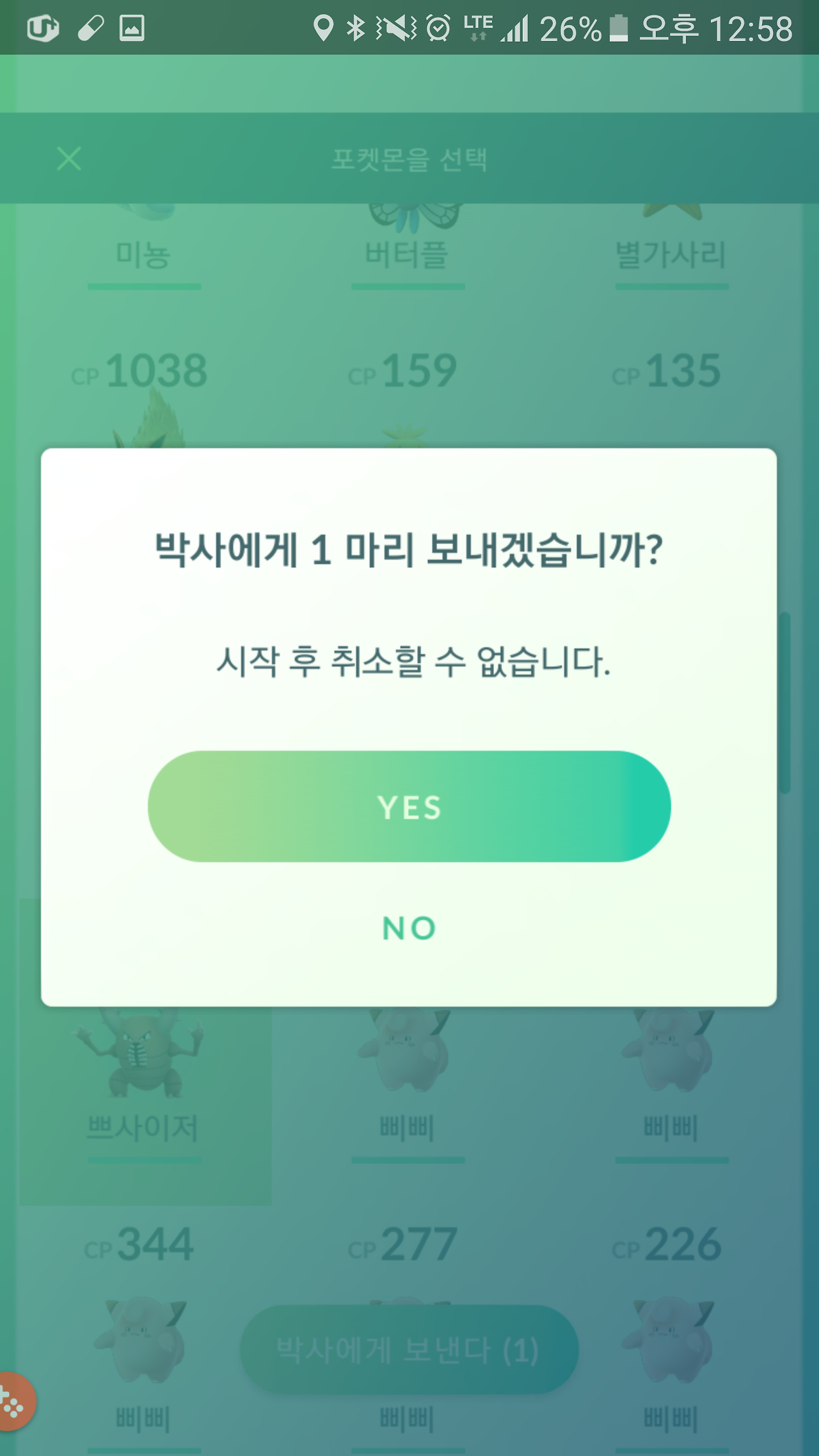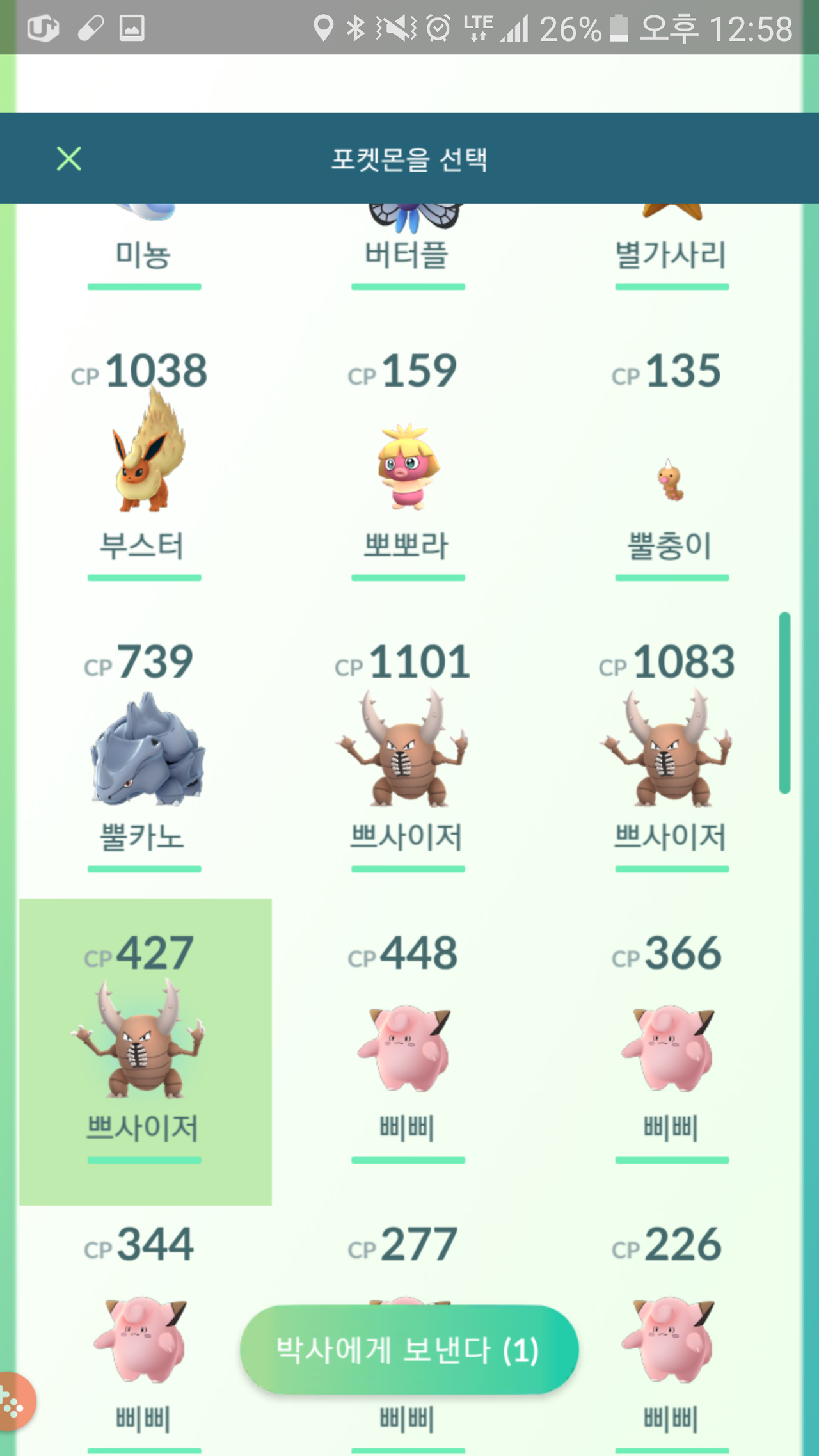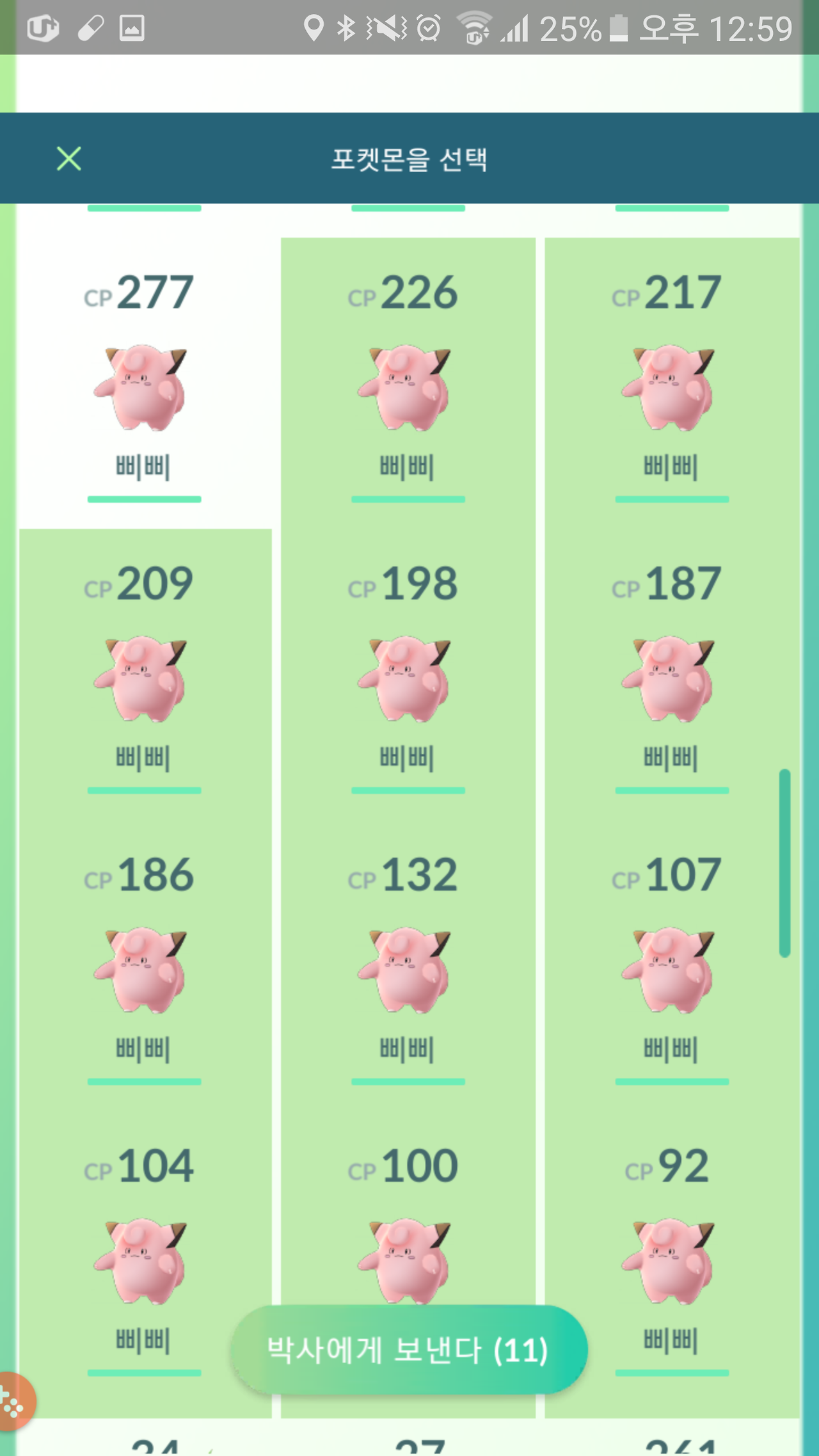 사탕을 얻기 위해 박사에게 보내기를 누르게 되는데, 기존에는 개별로 하나씩 보낼때는 몰랐는데 알면 다시는 개별 기능을 쓰지 않게 된다.