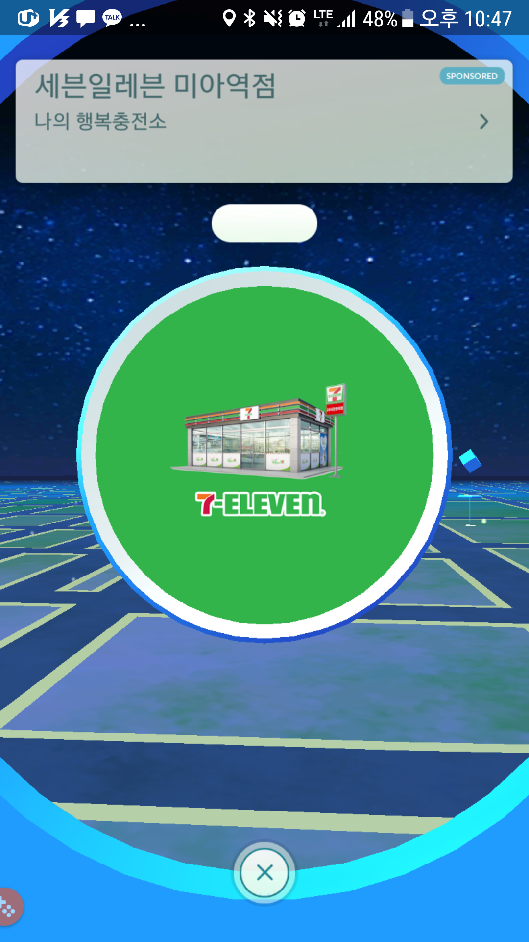 동네에서 보니 세븐일레븐과 롯데리아가 포켓스톱으로 나온다.